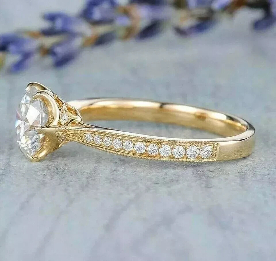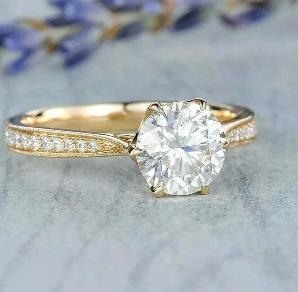 Elevate your special moments with the exquisite 2CT Round Cut Lab Created Diamond Engagement Ring, beautifully set in 14K Yellow Gold Plating. A symbol of love and commitment, this ring is designed for all ring sizes, ensuring a perfect fit for any occasion. Crafted with a prong setting, the main white diamond sparkles with a round shape and an excellent cut grade, bringing a total carat weight of 2.2Ct to your everyday elegance. With its solid gold pattern and the brilliance of a very, very slightly included (VVS1) diamond, this ring is a testament to timeless style and quality. Whether it's an anniversary or a promise of a forever love, this ring from sanavi_4215 is an unforgettable choice, complete with the option for personalization to make it uniquely yours.