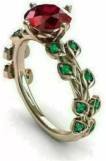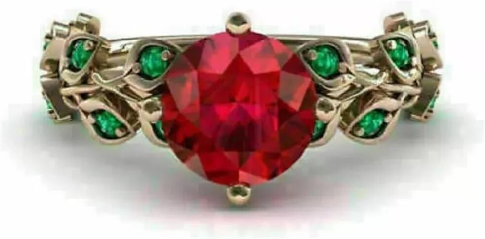 2CT Round Lab Ruby & Emerald Leaf Ring in 14K Gold Plated