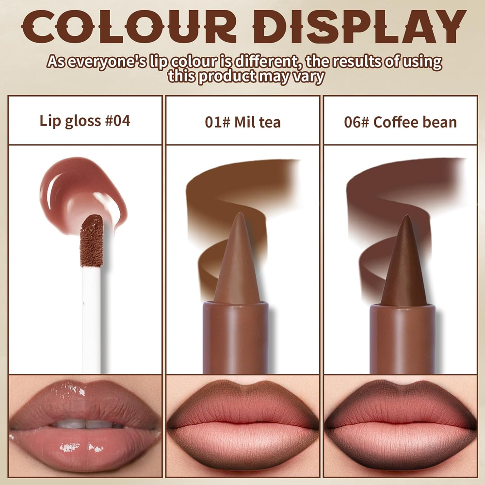 2 Colors Lip Liner with Lip Gloss Set, Moisturizing Light Brown Lip Pencil Dark Brown Lip Liner and Lip Butter Gloss Combo, Long Lasting Glossy Lip Stain Lipstick Lip Care Makeup 2 Colors Lip Liner and Lip Gloss Combo: This contains 2 brown lip liners and 1 butter gloss lip glaze. The lip liner colors are the very popular light brown and dark brown respectively, with a creamy texture and very smooth application, so you can easily get the colour of the lip liner; with the moisturizing Butter Lip Glaze, you can create a unique gradient lip look Moisturizing and Smooth: This 2 in 1 lip liner lipstick texture is very fine, smooth when applied, depicting a good lip line and then use the lip glaze, moisturized, full and glossy lips, a good product to take care of your lips Easy to Apply: Lip liner can also be used as a lipstick, apply directly to the lips, easy to get full lips; in conjunction with the use of lip glaze, the first lip liner pen to describe the shape of the lips you want, and then use a lip brush or cotton swabs will be drawn from the outside to the inside of the natural halo lip line, and finally apply the lip glaze, so you can have a full, moisturized and soft lips Mild Formula: The gentle formula won't hurt your lips and can also give them a beautiful shine, great for everyday as well as concerts, stages, parties and so on Plumping Lip Makeup: The unique combination of this set will give you plumping and beautiful lips, carry it with you at all times and be beautiful with you Product Description: Size: 9.2*6.85*3.1cm/3.62*2.7*1.22in Weight: 14g/0.49oz Color: dark brown Skin Type: All Skin Features: 1.Light and dark brown lip liners paired with lip butter gloss. 2.Moisturizing and plumping lip makeup. 3.Sooth and multi-functional. 4.Mild formula and no harm to your skin, is suitable for all skin. 5.Easy to apply and remove. Warm Tips: 1.This product is for external use only. 2.If you feel uncomfortable while using this product, please stop using it immediately. 3.Please keep the product out of touch of children. 4.All photos are taken in real products. Due to photography, display or other reasons, there may be slight differences between the picture and the real object. Please refer to the real object. 5.As most makeup, we highly recommend you to make a skin test before the first use. How to make skin test: Apply a small amount on the wrist or behind the ears, wait for 2-5 minutes to check if there is allergic reaction. If feeling unwell, please stop using immediately and seek medical attention if necessary. Dimensions 3.74 inches x 3.94 inches x 0.91 inches. Weight: 2.08 oz Specifications Color Light and Dark Brown Finish Type Glossy Skin Type All Item Form Cream Package Dimensions 3.94 x 3.74 x 0.91 inches; 2.08 ounces Shipping: Shipped from the USA. Fast delivery within 2–3 days. Payment: PayPal, credit card, bank transfer. Returns: 30-day free return – we cover the shipping cost. Quality: Made in Europe/USA/China. No customs fees. VAT invoice on request. Feedback: You’ll automatically receive positive feedback after payment.