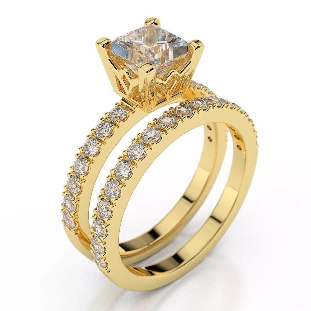 $ 54.1214k Yellow Gold Plated 2Ct Round Cut Natural Moissanite Women's Wedding Ring