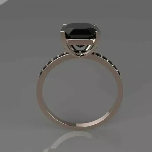 2Ct Emerald Cut Lab Created Black Diamond Engagement Ring 14K White Gold Plated