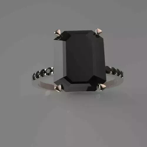 $ 42.242Ct Emerald Cut Lab Black Diamond Ring in 14K White Gold