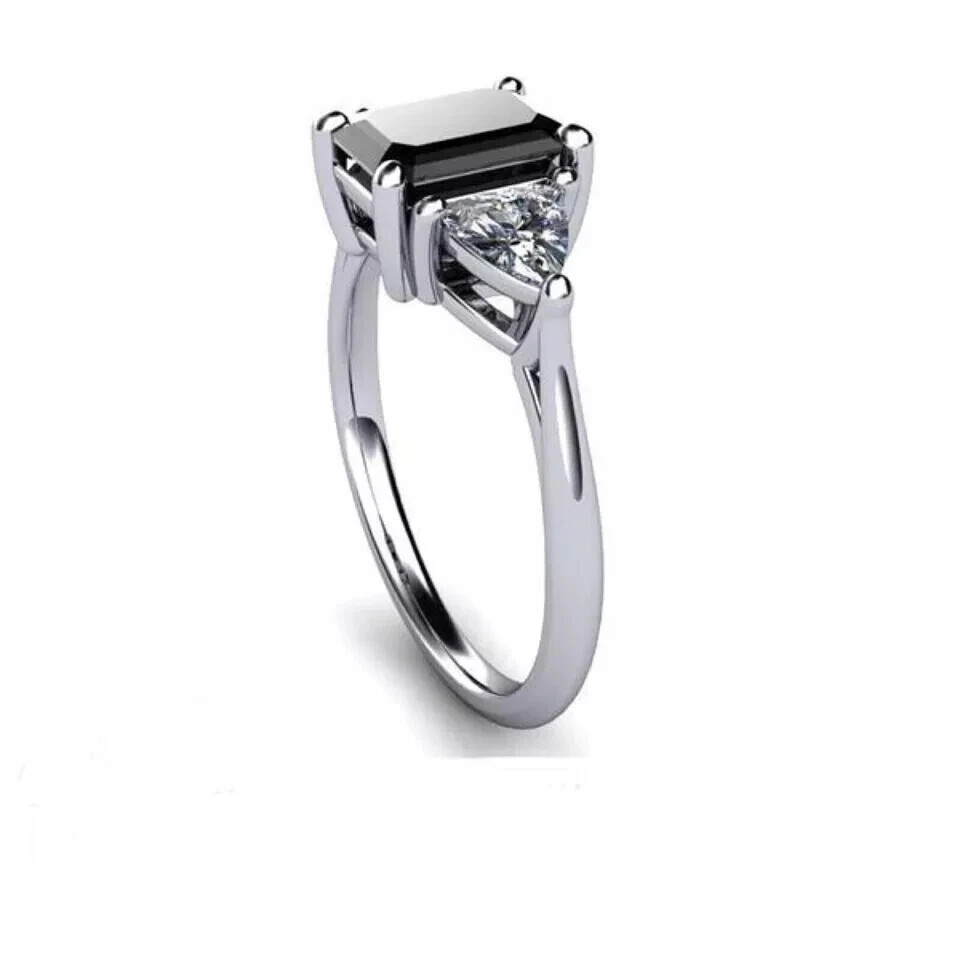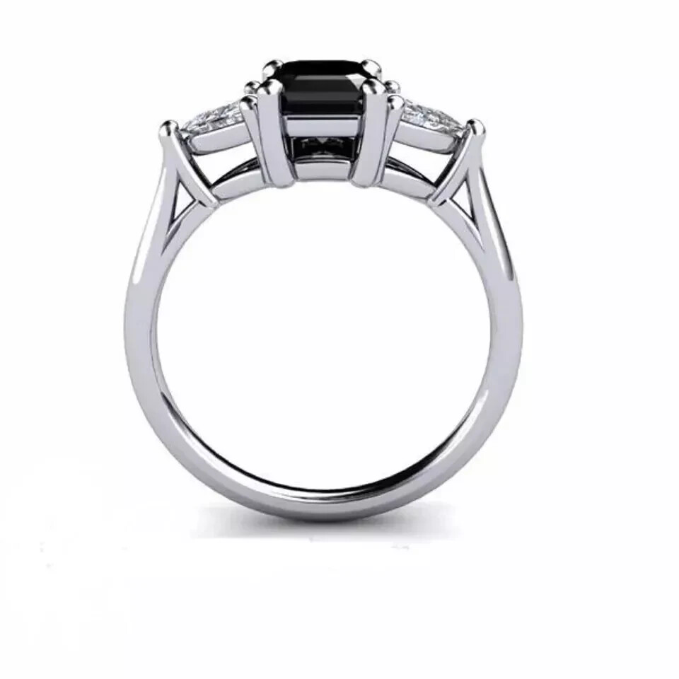 Elevate your special moments with the 2Ct Emerald Cut Lab-Created Black Diamond Engagement Ring, exquisitely crafted for a touch of luxury. The ring features a stunning emerald-cut black lab-created diamond, prong-set to ensure maximum brilliance and secure placement. The sleek 14K white gold plating offers a timeless finish, complementing the sophisticated elegance of the design. With a VVS1 clarity grade, the main stone is flawlessly clean, promising an impeccable appearance that will capture attention. The solitaire style provides a classic and versatile look, suitable for any occasion from anniversaries to birthdays. Personalization options are available to ensure this piece is as unique as your love.