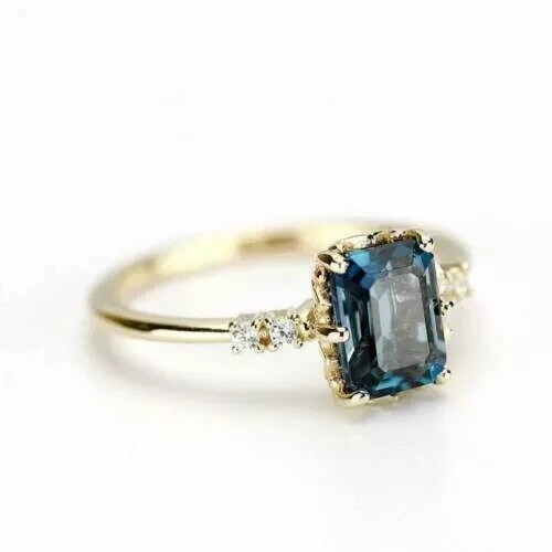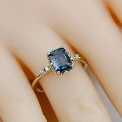 2Ct Emerald-Cut Blue Topaz Engagement Ring in 14k Yellow Gold Plating for Women