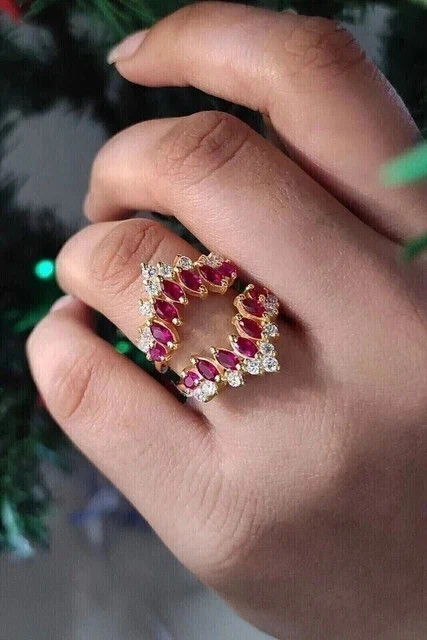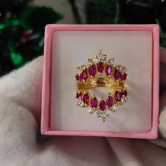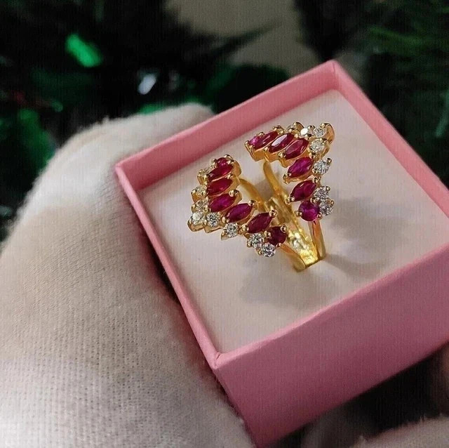 Base Metal: Silver Handmade: Yes Metal: Sterling Silver Personalize: Yes Secondary Stone: Diamond Cut Grade: Excellent Diamond Clarity Grade: N/A Type: Ring Shape: Round Customized: Yes Features: Engraved, Nickel-Free Brand: Sunnahstyle2026 Color: Yellow Setting Style: Prong Number of Diamonds: AS PER IMAGE Occasion: Anniversary, Wedding, Engagement, Valentine's Day, Birthday Style: Wrap Main Stone Creation: Lab-Created Main Stone Shape: Marquise Diamond Color Grade: D Colored Diamond Intensity: Faint Metal Purity: 925 Number of Gemstones: N/A Material: Stone, Gemstone Total Carat Weight: 2CT Country of Origin: India Ring Size: All Rings Size Available Main Stone: Ruby Theme: Beauty Main Stone Color: Pink Seller Warranty: Yes Main Stone Treatment: Not Enhanced Sizable: Yes