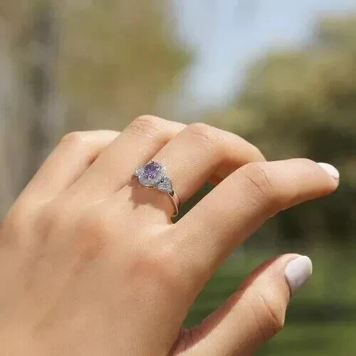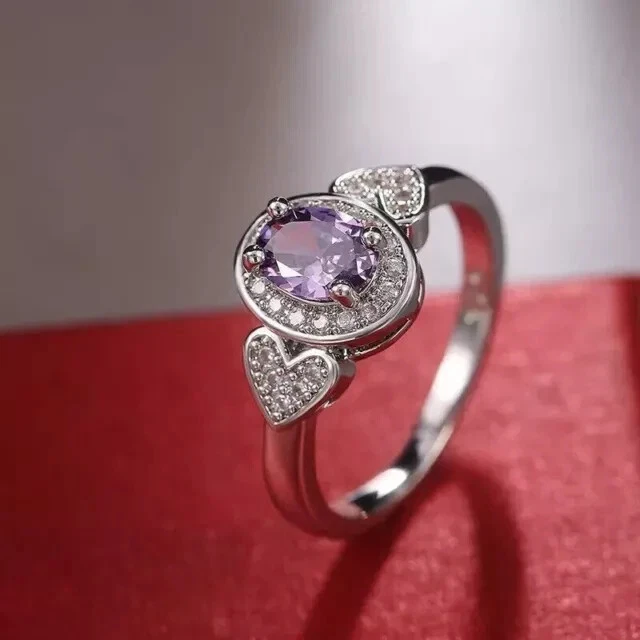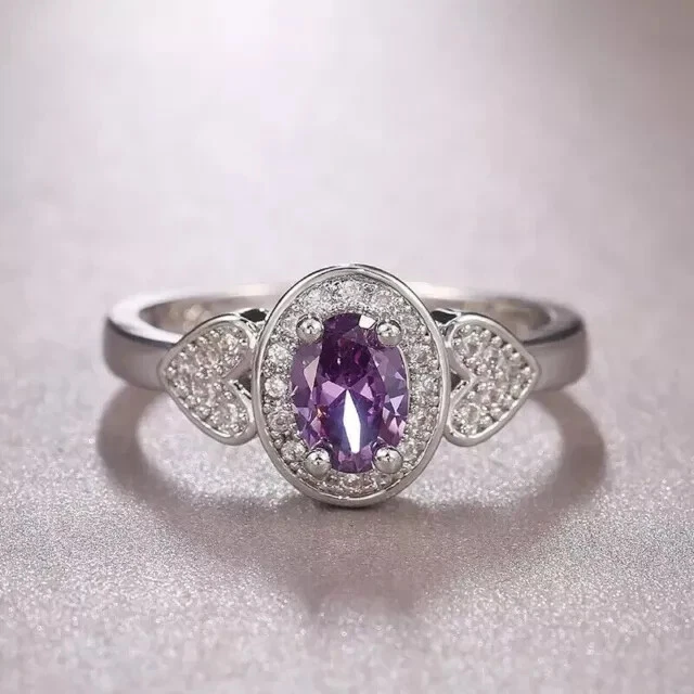 2Ct Oval Cut Simulated Amethyst Women Fancy Engagement Ring 14KWhite Gold Plated