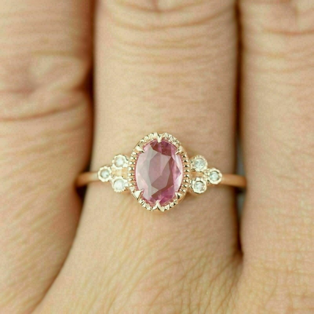 2.50Ct Marquise Simulated Pink Sapphire Women's Fancy Ring 14K White Gold Plated