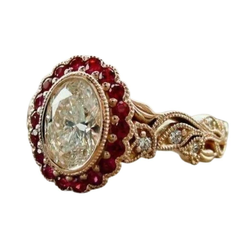 Elevate your jewelry collection with the exquisite 2.00Ct Oval Cut Lab Created Diamond Halo Women's Ring, impeccably crafted in 14k Rose Gold Plated. The centerpiece is a dazzling oval-cut diamond, complemented by a halo that enhances its splendor. The prong setting ensures the security of the stones, while the rose gold plating adds a touch of warmth to the piece. Designed for versatility, this ring is suitable for a range of occasions from anniversaries to birthdays, making it a thoughtful gift or a timeless addition to any jewelry collection. With the option for personalization, this piece can be made uniquely yours. Whether it's for a loved one or a treat for yourself, this ring promises to be a cherished accessory.