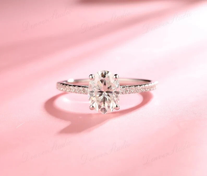 3.00Ct Oval Cut Natural Moissanite Women's Wedding Ring in 14k White Gold Plated