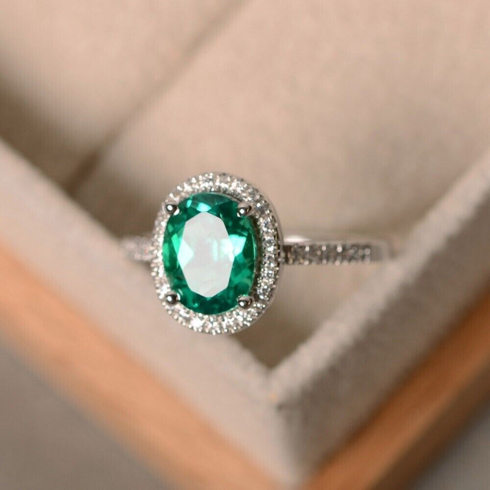 $ 2.1114k White Gold Pave Peridot Engagement Wedding Ring Fine Jewelry