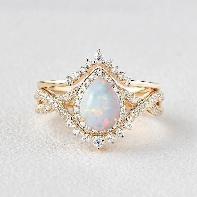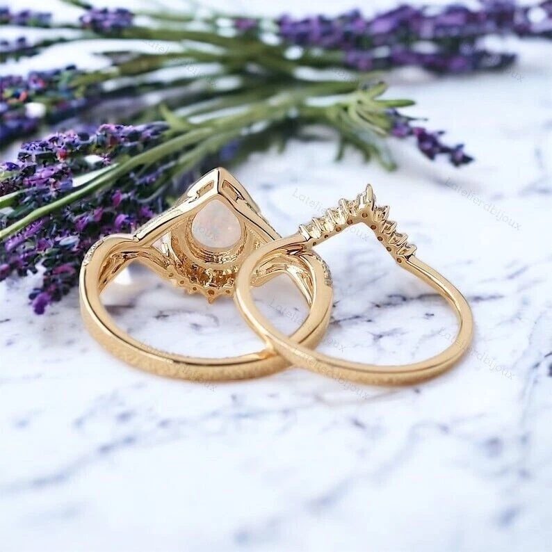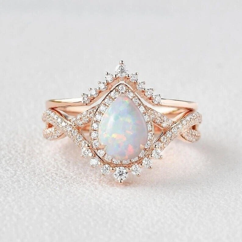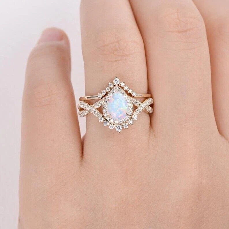 2Ct Pear Cut Lab Created Fire Opal Rose Gold Plated Over Silver Wedding Ring Set