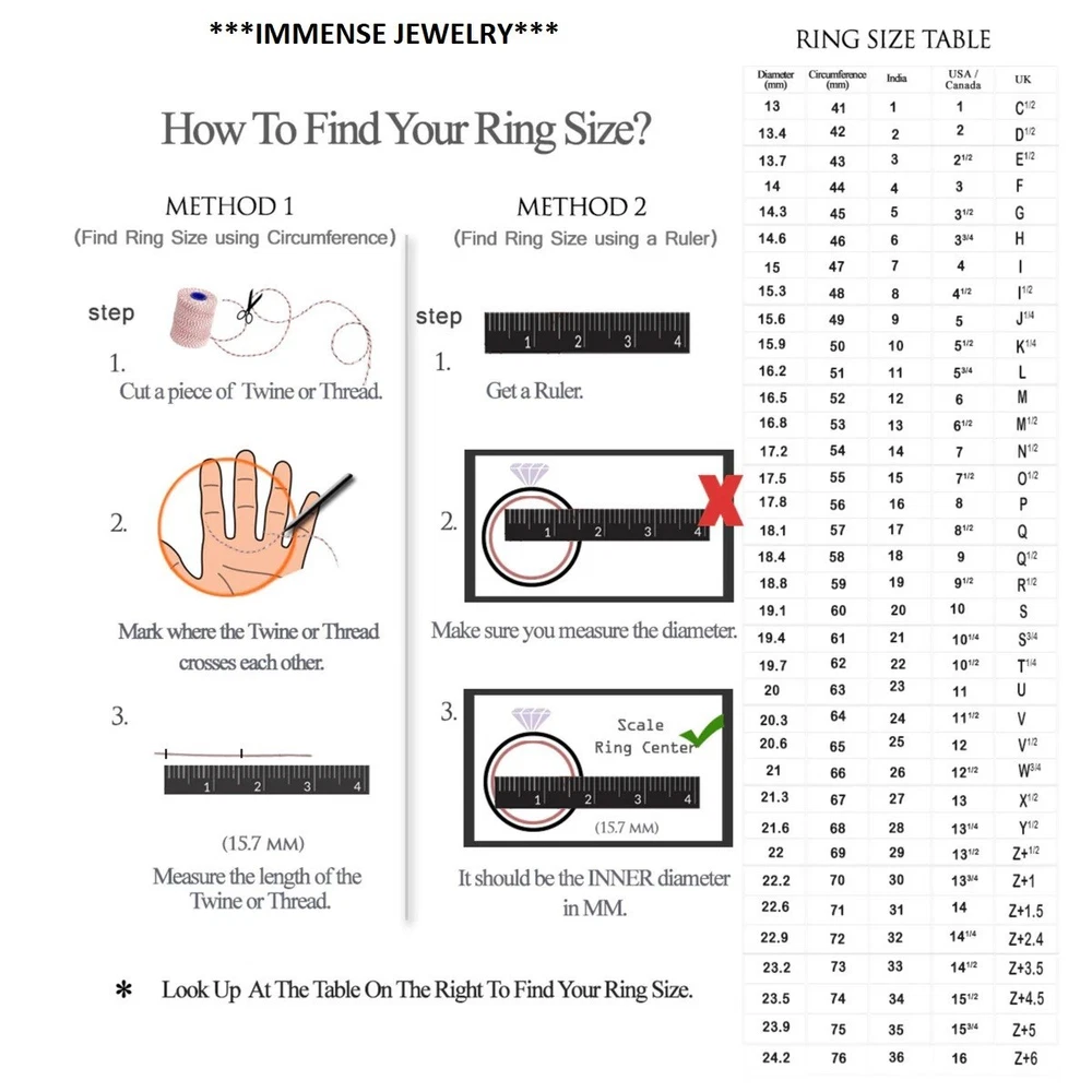 Welcome to Immense Jewelry Buy With Confidence from A Trusted Seller Note to buyer Ø Kindly note customs clearing charge is imposed in many countries. We are not responsible for the amount of duty or any other related charges. Ø All International buyers are responsible for all tax, duties and customs fees. Ø The images uploaded will not match exactly with the Original products as the images are Photoshop. **What is 925 sterling silver?** 925 silver means the silver have 92.5% Pure silver in it. no matter hardness, shine, antioxidation is the most Reasonable content, Is the international recognized High quality Jewelry. **Why the 925 silver jewelry will become black after wear a long time? Silver and the sulfur in the air have a react if not protect well. (no water is better). Silver and the toxin in your body have a react be black. **How to handle the black silver jewelry? Use silver clothing to clear it.--the best and good way, No water is the better. ** Why some 925 silver jewelry plated 18K White Gold? To protect the silver color loss color and make the jewelry looks more shine and bright. Special Care Ø The White/Yellow/Rose/Black Gold Plating on this item can be effected by many elements. We advise removing this ring when being exposed to any type of substance or chemical. This includes, but not limited to: perfume, hairspray, water, lotions, cleaning products, etc. Payment :- Ø We accept payment via Payoneer only. Ø You can also pay using your credit card, via Payoneer, by using Payoneer as a guest. Ø Payment is required within 3 days of the sale of an item. Shipping:- Ø Orders are shipped within 5 to 7 business days after the payment is received and the size of the products (if any). Ø We will send you an email to confirm the outgoing date and give you the estimated arrival date at your address. Ø Please note that if you pay for expedited shipping, the handling time for the order is stands 5 to 7 business days. Whenever the item ships, It will ship by the expedited service, if you have paid for it. Ø Business days do not include Saturdays, Sundays and Federal Holidays. Delivery Time Delivery within USA takes 3-10 business days after item is shipped. This depends on the mail service we send it by. Please note that we may ship via different mail services. Delivery to AK, HI, PR, APO/FPO addresses and other US territories usually takes 4 to 6weeks. Please note that the shipping service do not provide service to Post Box address. Terms of Sale For Returns - We offer an unconditional, no questions asked 100% money back policy for a maximum period of 30 Days, starting from the day you have received the item. If you find the product damaged or not as described on the listing, we are happy to refund your payment once we received the item. It is that simple! The only condition is that the item must be returned unused, unchanged, undamaged and including the complete packaging, documentation, tags, etc. Shipping charges are not refundable. Buyers pay the return shipping Exchange option is not available. About US We cater to Domestic as well as International clients with equal ease. Our first and foremost concern is quality that we provide to our customers. We have a dedicated team of craftsmen’s whose perseverance and hard-work maintains the quality required for Gold, Silver, Alloy and Brass jewelry by our customers. We can manufacture Silver with Diamonds products as well as Silver-CZ products with equal ease. We have state of art machinery to match the customer’s quality requirement. We prepare product on orders basis and delivery is on time. Contact US If you have any questions, concerns or inquiries about this item or any other item listed on Immense Jewelry Brand please contact us through the ebay messaging system. We answer all messages within 48 hours, usually earlier. Feedback We request our valued customers to leave us a feedback once satisfied with the transaction as we are always depending on reviews from you and always need your assistance. We also request you to contact us for any kind of issues before leaving a negative or neutral feedback after the transaction. We will try our absolute best to resolve any problems that you may have. Please contact us through the ebay. If you are satisfied with our item and services, please leave us a Positive Feedback with a 5-star (*****) on the ebay Detailed Seller Rating system, which will help us to serve you better. Thank You & Visit Again !!