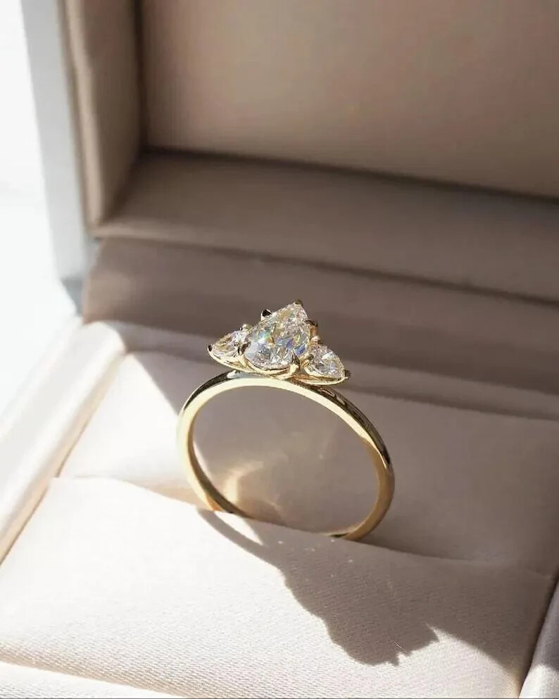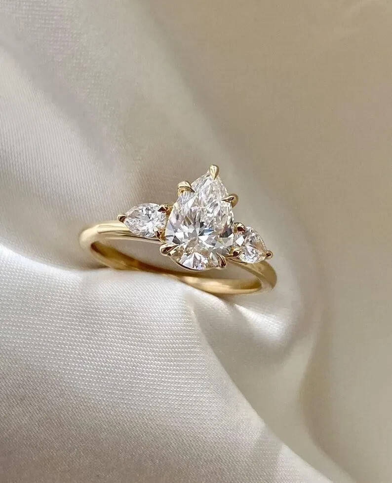 Elevate your special moments with the exquisite 2Ct Pear Cut Natural Moissanite Engagement Ring, beautifully set in 14k Yellow Gold Plated sterling silver. The dazzling white moissanite stone, cut with excellent precision, captures the light's essence, creating a brilliant sparkle that's sure to catch attention. With its pear shape and flawless clarity, this main stone is complemented by additional gemstones, as depicted in the image, to enhance its overall allure. Crafted for love and commitment, this ring is perfect for anniversaries or significant milestones. It is available in all ring sizes, ensuring a comfortable fit for any occasion. Personalization is at the heart of this handmade piece, with the option to customize as per your requirements. Embrace the elegance of this 'sanavi_4215' creation, a symbol of beauty and enduring promise.