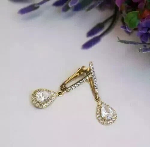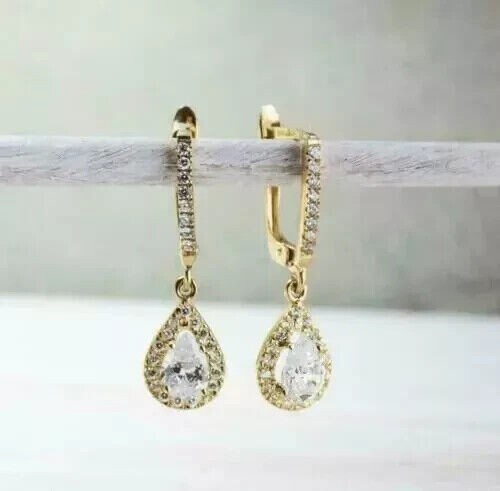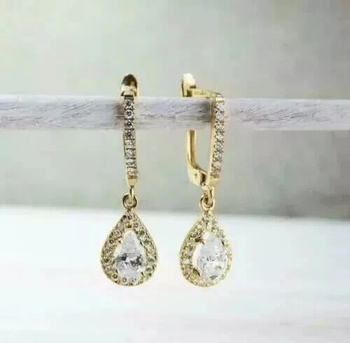 2Ct Pear Cut Simulated Diamond Teardrop Earrings in 14K Gold Plated