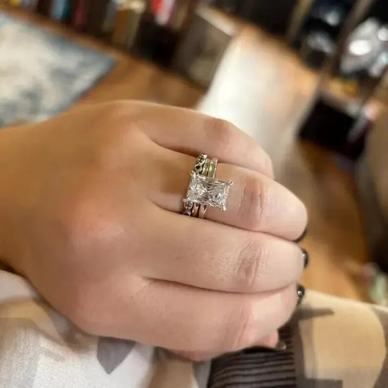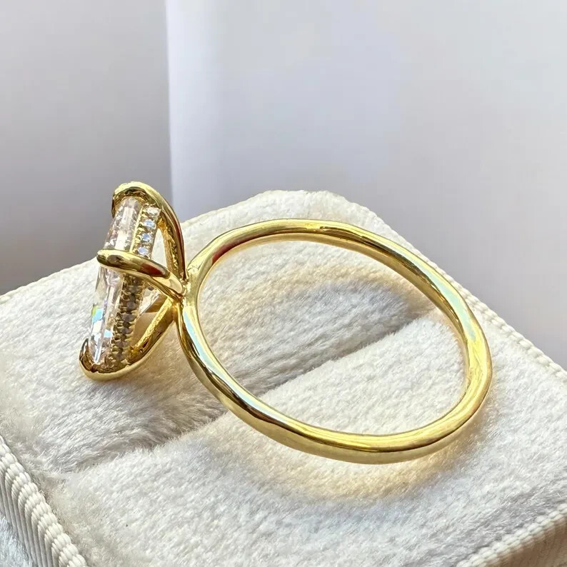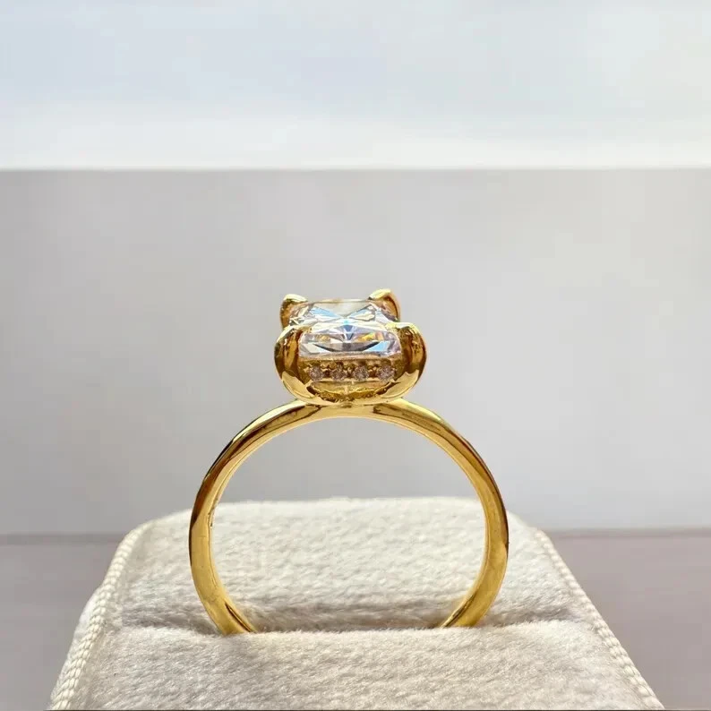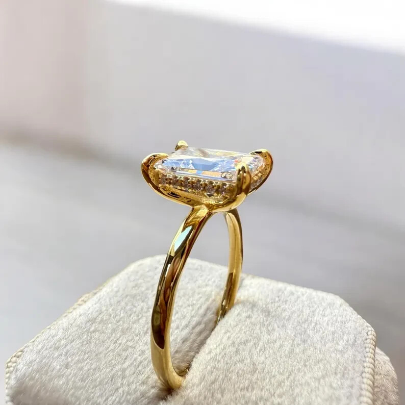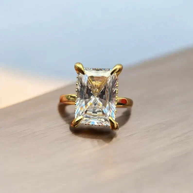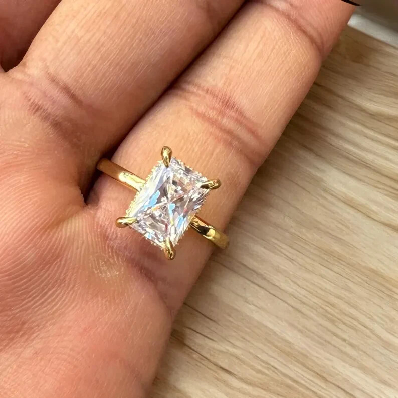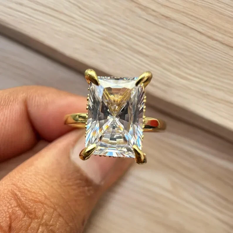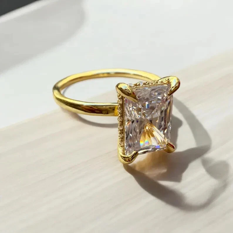 9Elevate your special moments with the exquisite 2CT Radiant Cut Natural Moissanite Women's Wedding Ring, beautifully set in 14k Yellow Gold Plated sterling silver. The dazzling white moissanite stone, radiating with its radiant cut, is the centerpiece of this stunning ring, complemented by additional gemstones as per your selection. With a metal purity of 14k and a prong setting style, this ring promises both elegance and durability. Crafted in the United States, this ring is a testament to fine craftsmanship, offering a choice of all ring sizes to ensure a perfect fit. The ring's timeless design, underscored by the Fancy Light colored diamond intensity, makes it an ideal choice for anniversaries, milestones, or simply to express your love. Personalization options are available to make this piece uniquely yours.