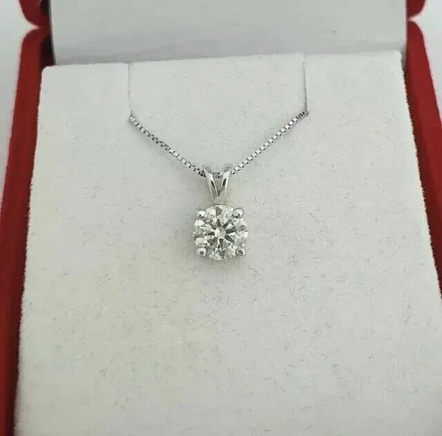 2Ct Round Cut Lab Created Solitaire Diamond Pendant Necklace 14k White Gold Over