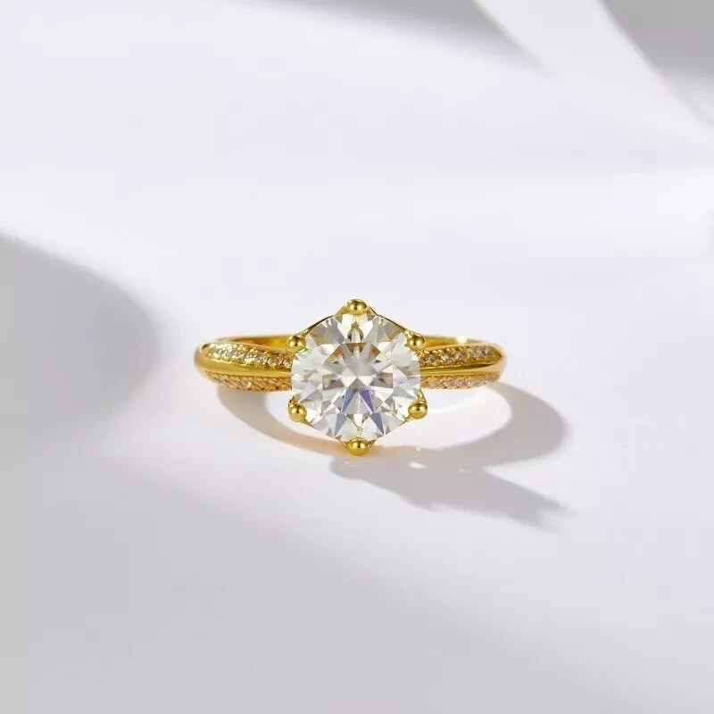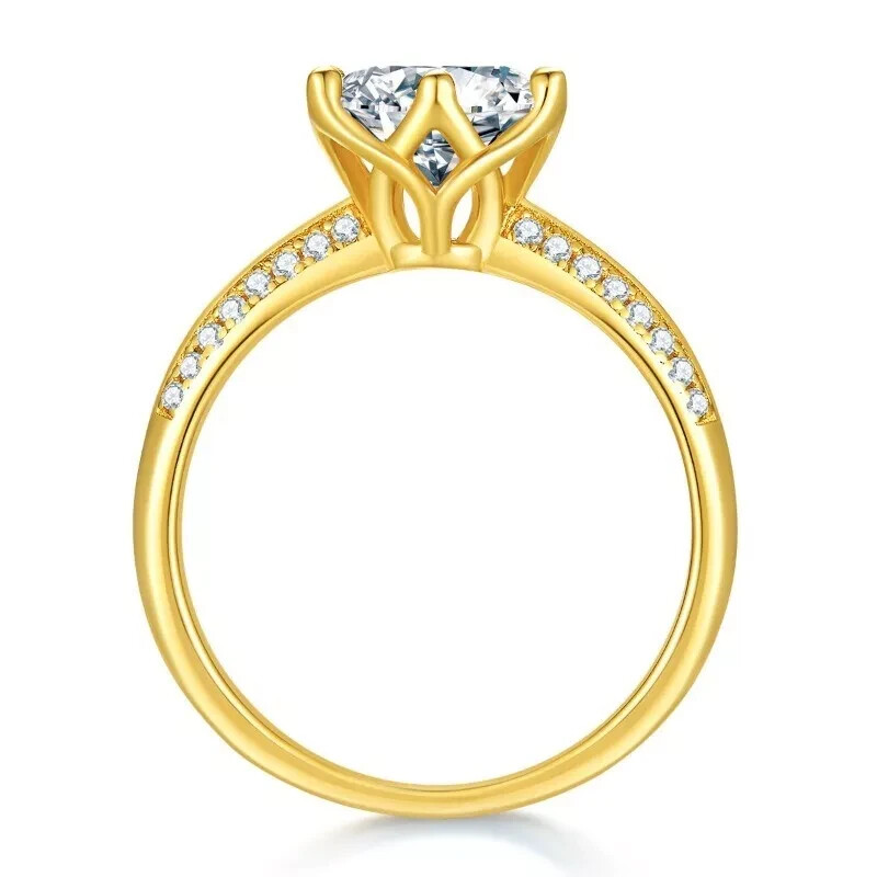 Elevate your special moments with the exquisite 2Ct Round Cut Natural Moissanite Women's Wedding Ring, beautifully set in 14k Yellow Gold Plating. This ring, crafted with the utmost precision, embodies the epitome of timeless elegance and sophistication. The gleaming gold hue, complemented by the sparkling moissanite stone, creates a captivating visual appeal that promises to enchant. Designed with love and attention to detail, this ring is a testament to skilled craftsmanship, available in all ring sizes to ensure a perfect fit. Whether it's a symbol of your eternal bond or a testament to your personal style, this ring, personalized to your unique preferences, is a true reflection of your love and commitment to yourself or your significant other.