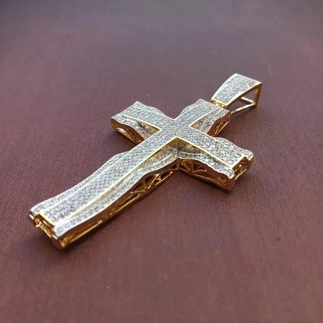 $ 105.342.10Ct Round Cut Real Moissanite Drip Cross Men's Pendant 14K White Gold Plated