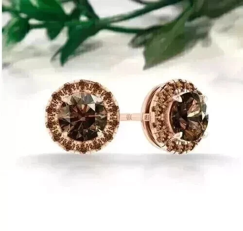 2Ct Round Cut Simulated Brown Diamond Womens Christmas Stud 14K Rose Gold Plated