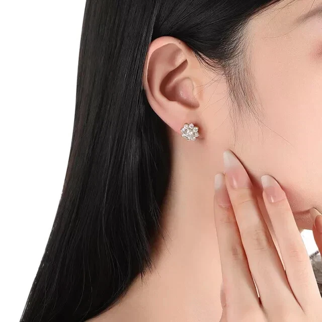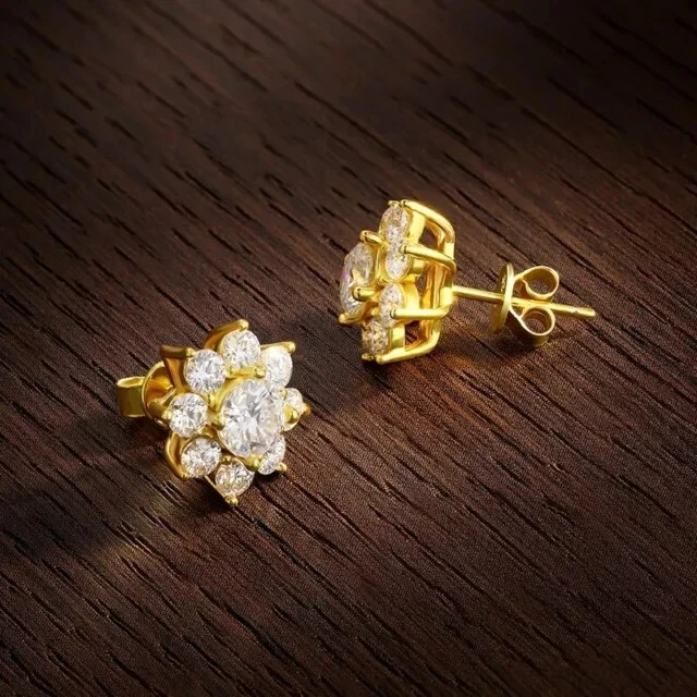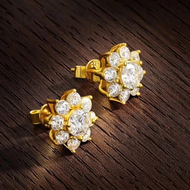 2Ct Round Cut Simulated Diamond Flower Womens Stud Earring 14KYellow Gold Plated