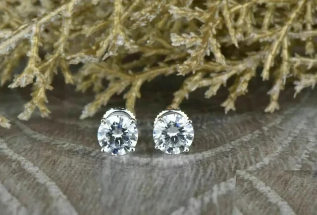 2Ct Round Cut Simulated Diamond Screw Back Stud Earrings in 14K White Gold