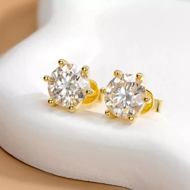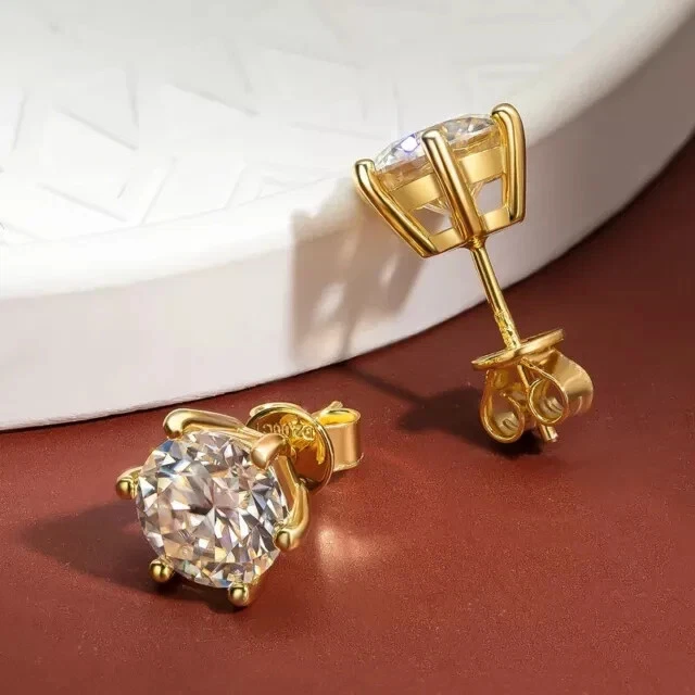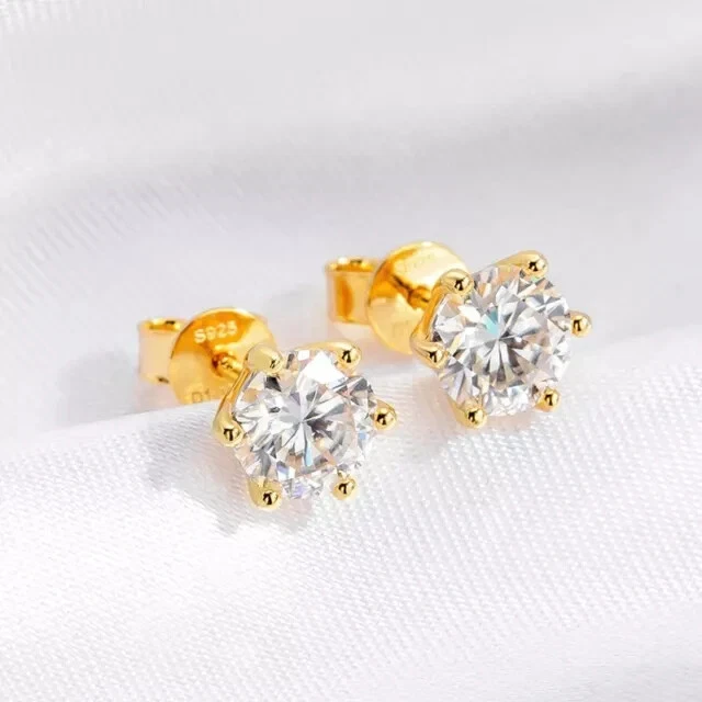 2Ct Round Cut Simulated Diamond Women Wedding Stud Earring 14KYellow Gold Plated