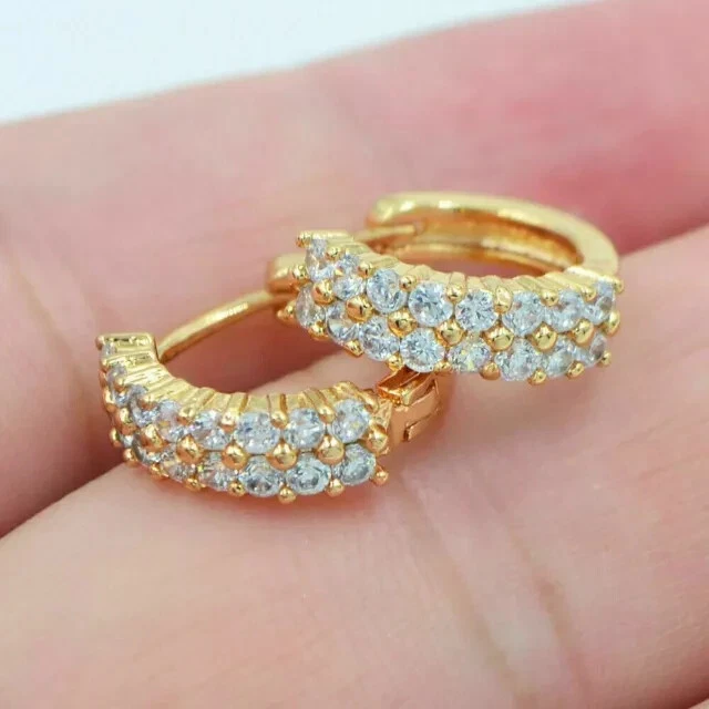 2Ct Round Cut Simulated Diamond Women's Hoop Earring 14K Yellow Gold Plated