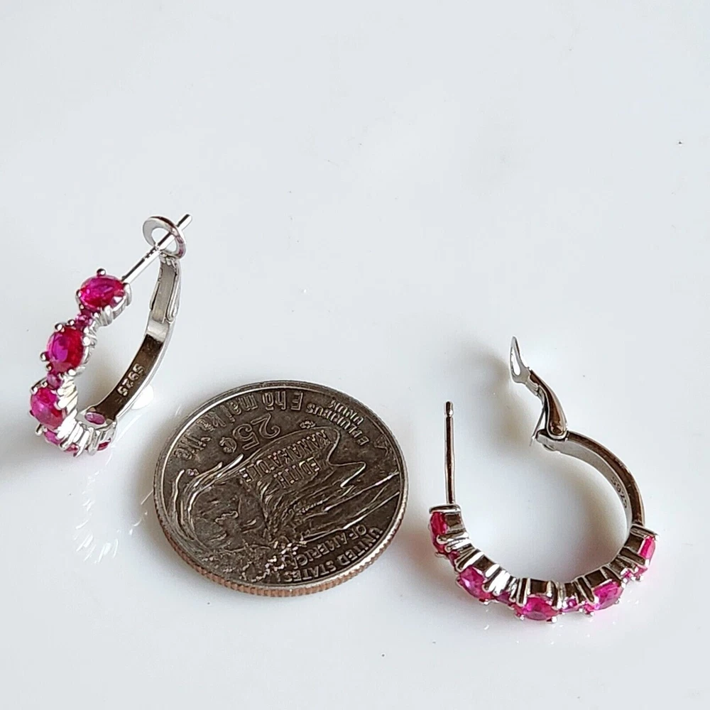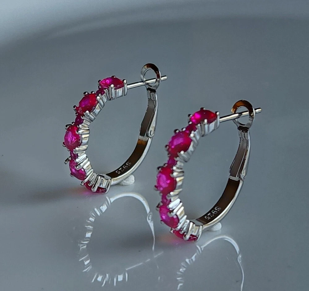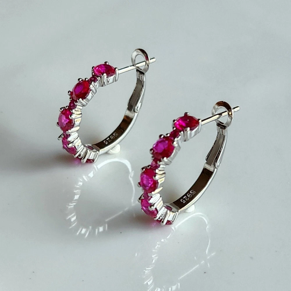 Main Stone Shape: Round Features: NA Shape: Round Signed: No Country of Origin: Unknown Color: White Brand: excellentstore Main Stone Color: Pink Material: Gemstone, Stone Era: Undated Metal: Silver gtin13: Does Not Apply Customized: Yes Closure: Omega Back Cut Grade: Excellent Main Stone Treatment: Not Enhanced Number of Gemstones: Multi Gemstone Clarity Grade: Slightly Included Theme: Beauty MPN: NA Item Length: ___ Seller Warranty: Yes Main Stone: Simulated Pink Ruby Handmade: Yes Antique: No Country/Region of Manufacture: India Setting Style: Prong Metal Purity: 925 Style: Hoop, Huggie Type: Earrings Main Stone Creation: Simulated Vintage: No UPC: Does Not Apply Base Metal: White Gold Plated Personalize: Yes Occasion: Anniversary, Birthday, Christening, Christmas, Confirmation/Communion, Engagement, Graduation, Mother's Day, Valentine's Day, Wedding Ear Area: Lobe Wholesale: Yes