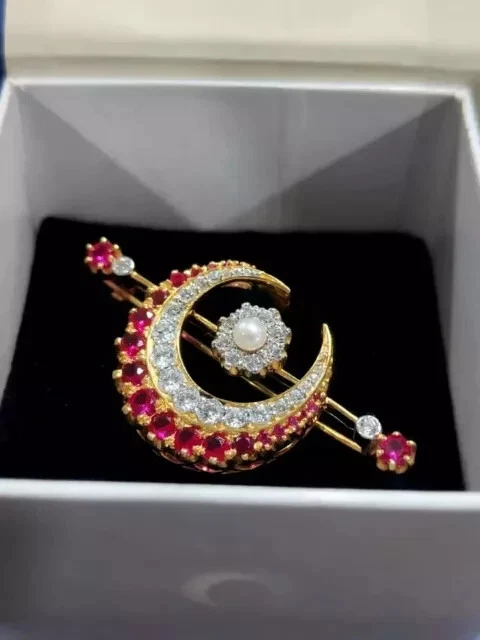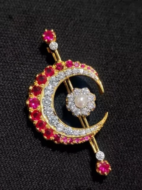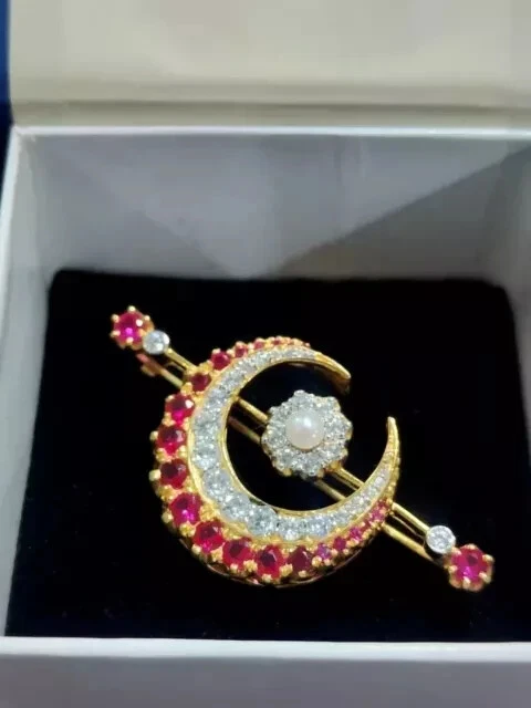 Cut Grade: Excellent Shape: Round Base Metal: Sterling Silver Theme: Beauty Handmade: Yes Main Stone: Ruby Type: Brooch Metal: Sterling Silver Gemstone Clarity Grade: Slightly Included Country/Region of Manufacture: India Country of Origin: India Features: Engraved Brand: karunas-76 Number of Gemstones: As Per Picture Seller Warranty: Yes Main Stone Creation: Simulated Main Stone Treatment: Not Enhanced Occasion: Anniversary, Birthday, Christening, Christmas, Engagement, Graduation, Mother's Day, Valentine's Day, Wedding Antique: No Material: Stone Personalize: Yes Metal Purity: 925 Setting Style: Prong Color: Yellow Main Stone Color: Red Vintage: No Secondary Stone: Simulated Diamond Item Length: As per picture Main Stone Shape: Round Era: Undated Signed: No Customized: Yes