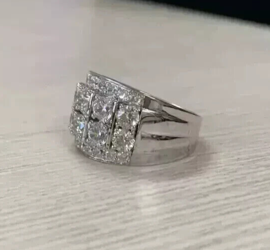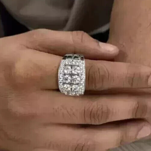 2Ct VVS1/D Moissanite Men's Engagement Ring in 925 Sterling Silver