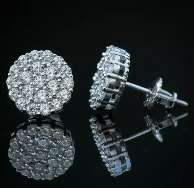 2Ct Simulated Diamond Cluster Stud Earrings in 14K White Gold Plated