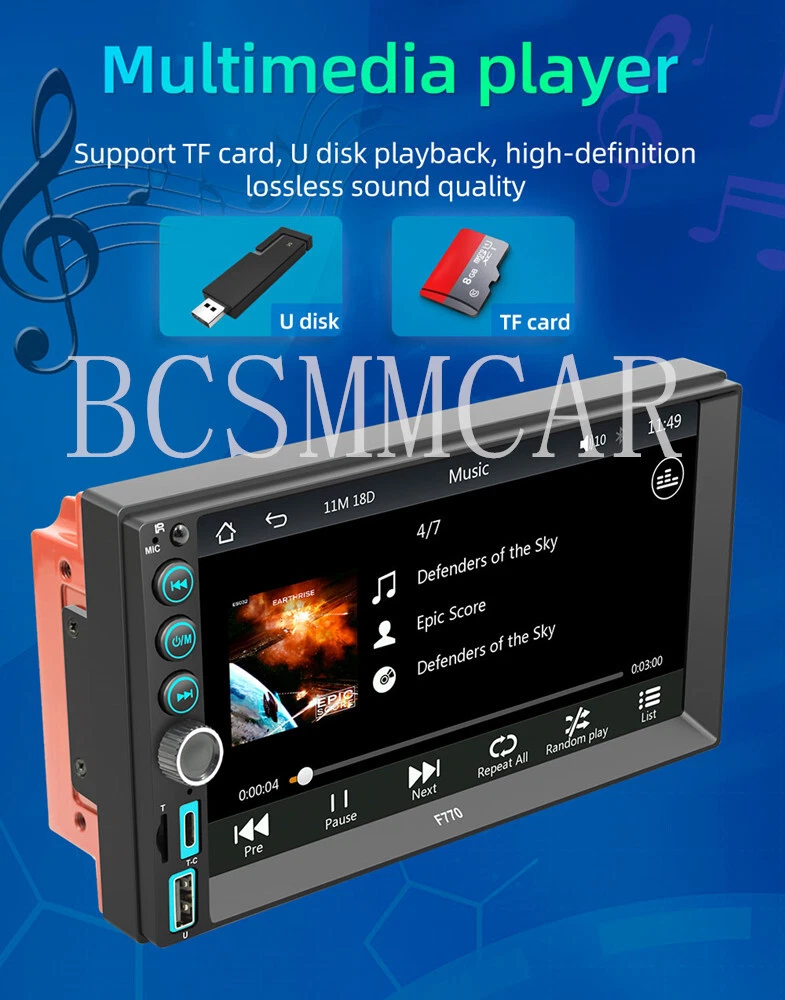 Audio format: MP3/WMA/AAC/APE/OGG/M4A/RA/WAV Brand: BCSMMCAR Manufacturer Part Number: FK0-222 Working voltage: 12-14.4V Manufacturer Warranty: 1 Year Port: USB Installation size: 178x103MM Screen Size: 7 in Output power: 60Wx4 Playback mode: USB drive,AUX,Bluetooth,card insertion playback Bluetooth version: 5.1 version gtin13: 945121312970 Country/Region of Manufacture: China Warranty: 1 Year OE/OEM Part Number: TY80024 Color: Black Universal Fitment: No UPC: 945121312970 Performance Part: Yes Compatible Format: MP5 Features: Bluetooth,Touchscreen
