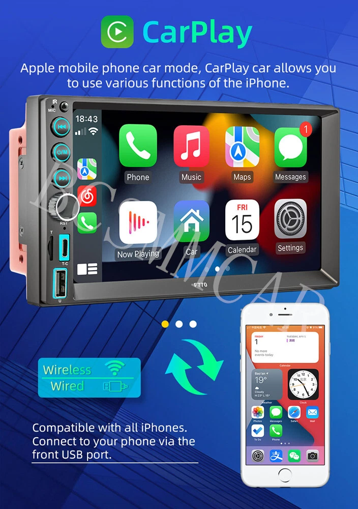 2DIN Car Stereo with CarPlay, Bluetooth, USB, Mirror Link, MP5 Player & Camera