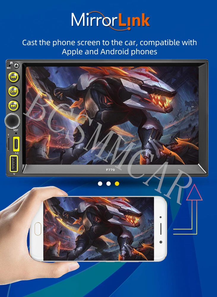 Store Categories Store Categories Other Details 7in Double 2 DIN HD Car Stereo Radio Bluetooth Touch Screen USB Type-c FM MP5 Player Wireless Carplay With 4LED Rearview Camera Note:Not is universal , Please check with your car panel's size !!! Product introduction: *Screen size: 7-inch touch screen *Screen resolution: 1024 * 600 *Software solution: F133 *Radio frequency: FM 87.5-108.0MHz AM 522~1620KHz *Bluetooth version: 5.1 version *Installation size: 178x103MM *Net weight of the whole machine: 0.82KG *Playback mode: USB drive, AUX, Bluetooth, card insertion playback *Working temperature: -10~60 ℃ *Working voltage: 12-14.4V *Output power: 60Wx4 *Audio format: MP3/WMA/AAC/APE/OGG/M4A/RA/WAV *Format: H263/H264/H265/DIVX HD (720P 1080I1080P) AVI/FLV/MKV/RMVB/MPEG/MP4 /WMV9/VC/ASF/TS/QT *Language parameters: English, Chinese, Spanish, Portuguese, Russian, German, French, Polish, Türkiye, Arabic, Hebrew, Italian, Czech, Japanese *Accessories: 1. Host 2. Manual 3. Power cord 4 21 key silicone remote control 5. Installation bracket 6. Screws 7. USB extension cable 8. Pepper antenna 9. 4LED Rear Camera Shipping Policy Payment Method Returns Policy Shipping Policy Payment Method Returns Policy Copyright©2017 DataCaciques Home Payment Shipping About us Contact us Store Categories Store Categories Other Details 7in Double 2 DIN HD Car Stereo Radio Bluetooth Touch Screen USB Type-c FM MP5 Player Wireless Carplay With 4LED Rearview Camera Note:Not is universal , Please check with your car panel's size !!! Product introduction: *Screen size: 7-inch touch screen *Screen resolution: 1024 * 600 *Software solution: F133 *Radio frequency: FM 87.5-108.0MHz AM 522~1620KHz *Bluetooth version: 5.1 version *Installation size: 178x103MM *Net weight of the whole machine: 0.82KG *Playback mode: USB drive, AUX, Bluetooth, card insertion playback *Working temperature: -10~60 ℃ *Working voltage: 12-14.4V *Output power: 60Wx4 *Audio format: MP3/WMA/AAC/APE/OGG/M4A/RA/WAV *Format: H263/H264/H265/DIVX HD (720P 1080I1080P) AVI/FLV/MKV/RMVB/MPEG/MP4 /WMV9/VC/ASF/TS/QT *Language parameters: English, Chinese, Spanish, Portuguese, Russian, German, French, Polish, Türkiye, Arabic, Hebrew, Italian, Czech, Japanese *Accessories: 1. Host 2. Manual 3. Power cord 4 21 key silicone remote control 5. Installation bracket 6. Screws 7. USB extension cable 8. Pepper antenna 9. 4LED Rear Camera Shipping Policy Payment Method Returns Policy Contact Us Shipping Policy All items will be checked before packing. All items are new and of high quality. Item will be shipped within 1 business days upon receipt of payment, excluding weekends and public holidays. If to USA,we will ship your order by USPS,it will take about 8-12 working days to you,and you can track it on line. If to other country,we will ship your order by China Post or Singapore Registered Air Mail,it will take about 14-21 working days to you,you aslo can track it on line. Delivery time is about 14-28 business days and it may take up to 8 weeks. Payment Method We accept payment by PayPal only ! Payment should be completed within 5 days after buyer places the order,or else an unpaid case will be opened in order to cancel the transaction. If you can not pay in time, please contact us. e-check from PayPal will only be processed once the payment clears. All of the items will be shipped to buyer's EBAY address,please confirm your address on Ebay before you buy.Your order will be usually shipped out the same or next business days once the payment is made and cleared. Returns Policy 30-day Warranty with Exchange for defective, malfunctioned, incorrect or parts-missing items. Please notify us and return the item with all parts and accessories packed and marked "FOR EXCHANGE" within 14 days of receipt. If defective, malfunctioned or parts-missing items are no longer available, a refund may be issued. All returning postage costs will be the responsibility of the buyers under all circumstances. Contact Us If you encounter any problems about anything, please feel free to contact us and we will do our best to assist you solve the issue. If you are not satisfied in anyway, please feel free to let us know and give us a second chance to correct it before you decide to leave any neutral or negative feedback. Please contact us through eBay link if you have any questions. We will reply you within 24- 48 hours. Please check you spam mail if no response for 48 hours. Home Payment Shipping BCSMMCAR Contact us