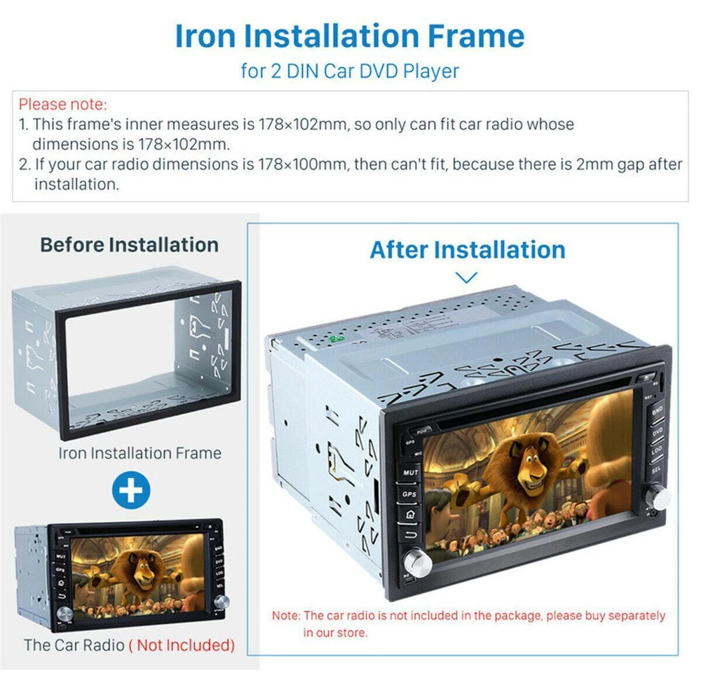 Please note: This iron installation frame set can fit with most Double Din Car radios(2 DIN UNIVERSAL), especially can be suitable for VW serious cars as followings. VW Passat B5/mMK5 2001-2005 VW Jetta 1998-2005 VW Bora/Polo/MK3/MK4 2000-2009 VW Golf MK4 1997-2003 VW Citi 2004-2009 VW Golf 2004-2009 VW Chico 2004-2009 VW Sharan 2000-2009 VW Transporter T4/T5 1998-2009 Item specifics: Item Type: Fascias Year: 1998-2016 Color: Silver Item Length: 18.1 cm Item Width: 11 cm Item Height: 6 cm Item Weight: 0.5 kg Material Type: Metal Special Features: Fascia Frame for Car Radio DVD player Car Kit Stereo Car Make: for VW Series Jetta Chico Golf Bora/Polo/MK3/MK4 eBay Cross Border Trade powered by ChannelEffect