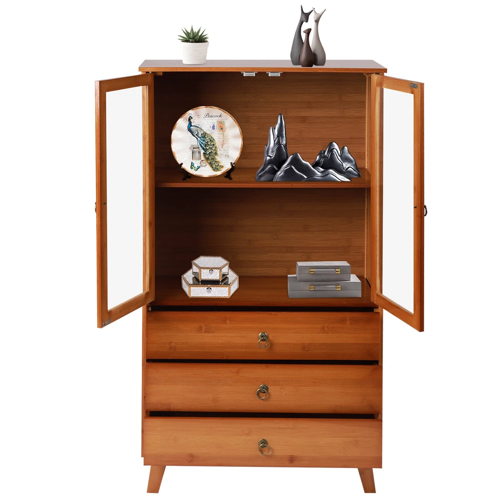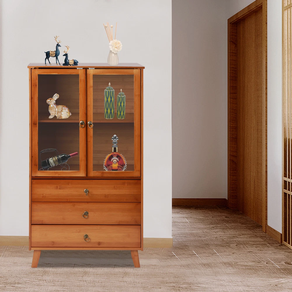Specification Color: Brown Assembly Required: Yes Material: Bamboo, MDF, Acrylic, Hardware Process: Spray Paint ( Environmental Varnish ) Mounting Type: Floor Mount Number of Tiers: 5 The Max. Load of Each Tier: About 10kg/22.05lbs (Under Uniform Force) Drawer Height: 12cm/4.7in Leg Height: 10cm/3.9in Cabinet Door Height: 58.5cm/23in Cabinet Door Inner Laminate Height: 29cm/11.4in Product Size: 60*29*110cm/ 23.6*11.4*43.3 in Package Included 1 * Wood Cabinet 1 * Chinese Manual All Accessories for Installation Bamboo Kitchen Buffet Hutch Storage Cupboard Cabinet Server Sideboard w/ Drawer welcome~ Description The afternoon sunshine, a book and a cup of tea are the meaning of life. With dual cabinet doors and three-drawer design, this wood cabinet can organize your items in order and let you experience simple life. It can adapt to any home style, adding elegance to your room. The raised design of the four legs provides strong support for the product while also making it easier to clean. Specification Color: Brown Assembly Required: Yes Material: Bamboo, MDF, Acrylic, Hardware Process: Spray Paint ( Environmental Varnish ) Mounting Type: Floor Mount Number of Tiers: 5 The Max. Load of Each Tier: About 10kg/22.05lbs (Under Uniform Force) Drawer Height: 12cm/4.7in Leg Height: 10cm/3.9in Cabinet Door Height: 58.5cm/23in Cabinet Door Inner Laminate Height: 29cm/11.4in Product Size: 60*29*110cm/ 23.6*11.4*43.3 in Package Included 1 * Wood Cabinet 1 * Chinese Manual All Accessories for Installation Key Features Multiple Layout: The double-tiered design, closed space of three drawers, and the open top platform can provide you with ample storage space to meet your various storage needs. High Stability: The sturdy structure of the rectangular body and the 4 legs at the bottom provide stability and durability to the product. Each tier can easily withstand 22.05 pounds of cargo under even force. Waterproof Surface: The eco-friendly varnished surface of the product is moisture resistant. Considerate Design: The design of acrylic doors and drawers can protect your products from light exposure, temperature, dirt and dust so that they can keep clean and tidy. Raised Foot Design: The raised support foot can effectively avoid moisture and make the center of gravity of the product more stable. The height of 3.9 inches can allow the sweeping robot to enter and exit freely so that the bottom space can be cleaned more thoroughly. Easy to Assemble: All necessary hardware and electronic manual in English (If you need it, please contact the customer service staff) can help you complete the installation quickly. Details Exquisite Accessories: The high-quality round design plus metal material add a metallic luster to the product and bring comfortable feel. Well-designed Door: The cabinet door with magnetic suction design is easy to close and can prevent items from falling out. In addition, the clear acrylic door can block dust and make interior items visible at a glance. Application The product can be used in the kitchen, bathroom, bedroom, and living room, and as a sideboard, storage cabinet, etc. Notes Bamboo wood products are from natural materials, inevitably there will be different textures, bamboo knots, bamboo halos, bamboo gaps, bamboo spots, and other phenomena, which will not affect the beauty and use. Please do not use corrosive cleaning agents or hard objects to clean, it is recommended to use a soft cloth to wipe. Bamboo wood products should not be placed in the sun for a long time to avoid cracking and deformation, and should not be placed in a dark and humid place for a long time to avoid mildew. Please keep accessories away from babies, children, and pets during installation. Please allow the slight color difference caused by the shooting light and the 1-3 cm error due to manual measurement, and make sure you do not mind before ordering. Payment Delivery details Terms of sales About us Contact us Payment We accept ebay payment 。 Fees such as import duties, taxes are not included in the item price or shipping costs. These charges are the buyer's responsibility. Delivery details Shipping: 2-9 working days to: USA Terms of sales We maintain high standards of excellence and strive for hundred percent customer satisfaction. Feedback is very important to us. We hope that you contact us immediately before you give neutral or negative feedback, so that we can address your concerns. It is impossible to address issues if we do not know about them! About us Your satis faction is our ultimate goal. We work hard to earn your trust and future business. Our certified technicians have tested each item before shipping. The unit comes with 1 year limited warranty on all manufacturing defects. a) If you receive a defective item, you may return it or ask for a discount. Please contact us within 14 days after you receive the package. b) What you returned must be intact and in its original packaging as re? u. Customer is responsible for shipping costs of the returned item. c) We will cover the cost of shipping back t with the shipping rate indicated in the registration page. We will send you a new unit or refund the full payment you paid. Thank you. Contact us Business Hour Business Hour: Monday To Friday: 8:30 AM to 5:00 PM (Beijing China time) Due to time zones, our reply to your questions may not be immediately. But within above working time, we will reply your email within 24 hours. If it's non-workdays, please kindly be patient and wait till Monday. Please contact us with ebay message. Please feel free to contact us if you have any questions. Monday To Friday: 8:30 AM to 5:00 PM (Beijing China time) Due to time zones, our reply to your questions may not be immediately. But within above working time, we will reply your email within 24 hours. If it's non-workdays, please kindly be patient and wait till Monday. Please contact us with ebay message. Please feel free to contact us if you have any questions. On Jul 28, 20