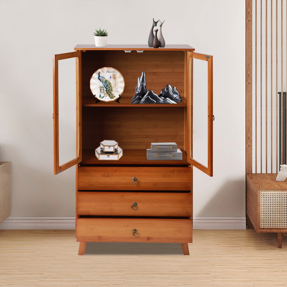 $ 50.43Durable Bamboo Storage Cabinet with Drawers Freestanding Single-door Cupboard
