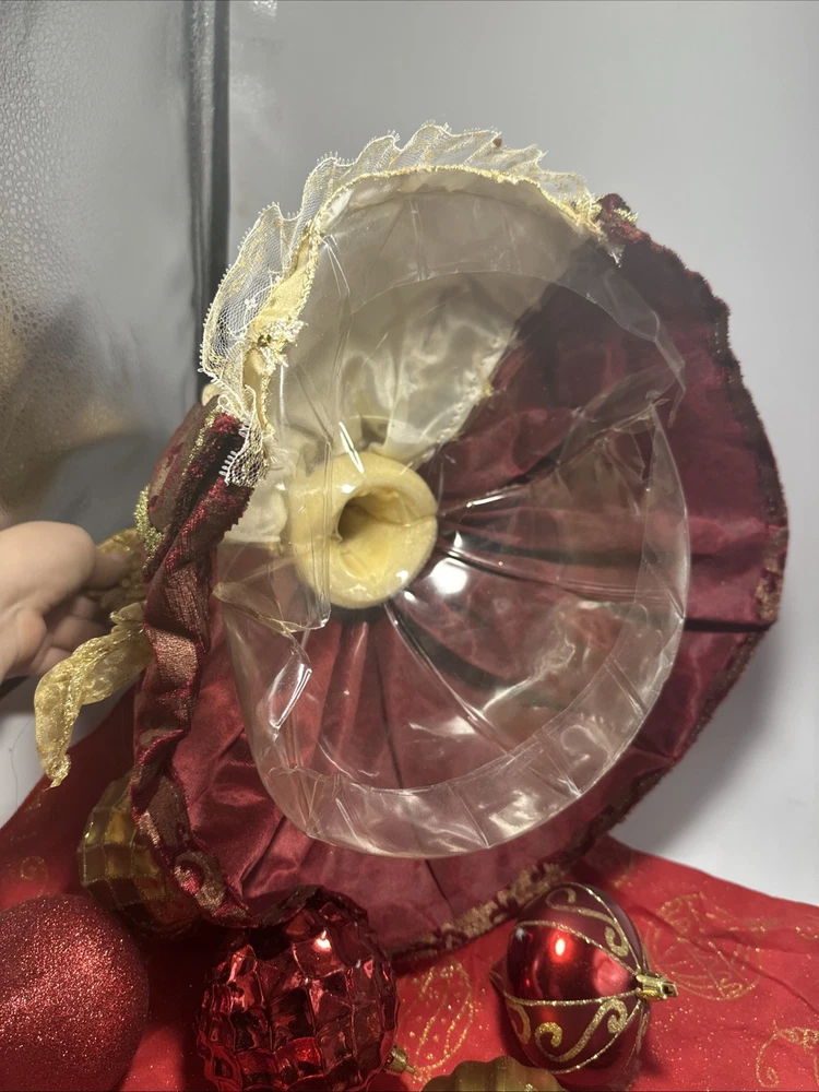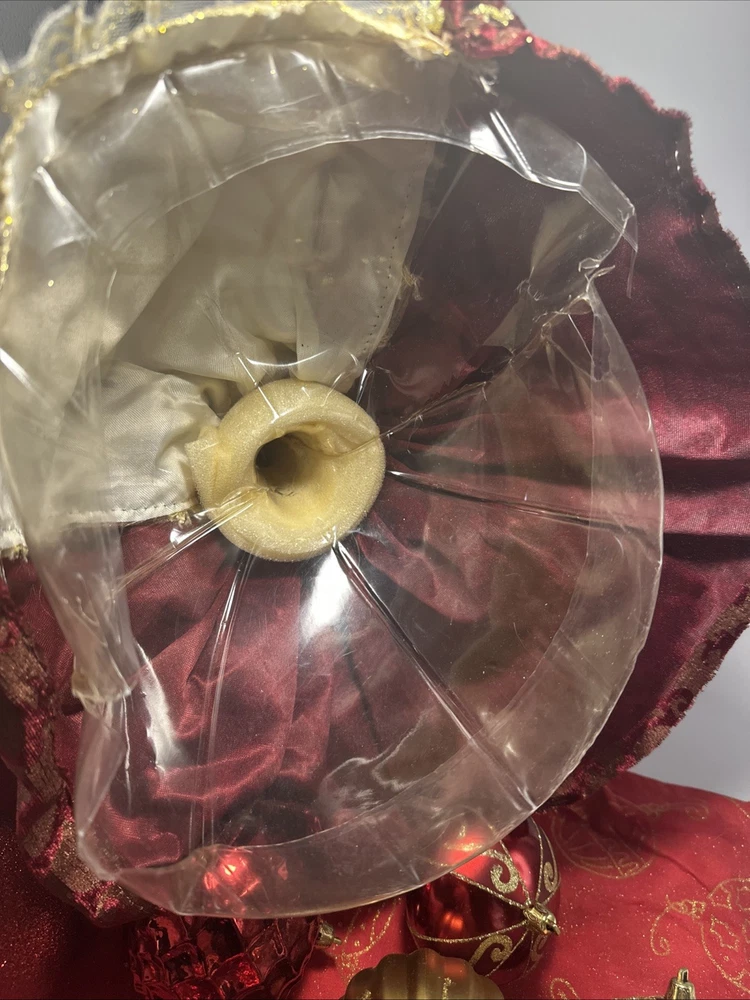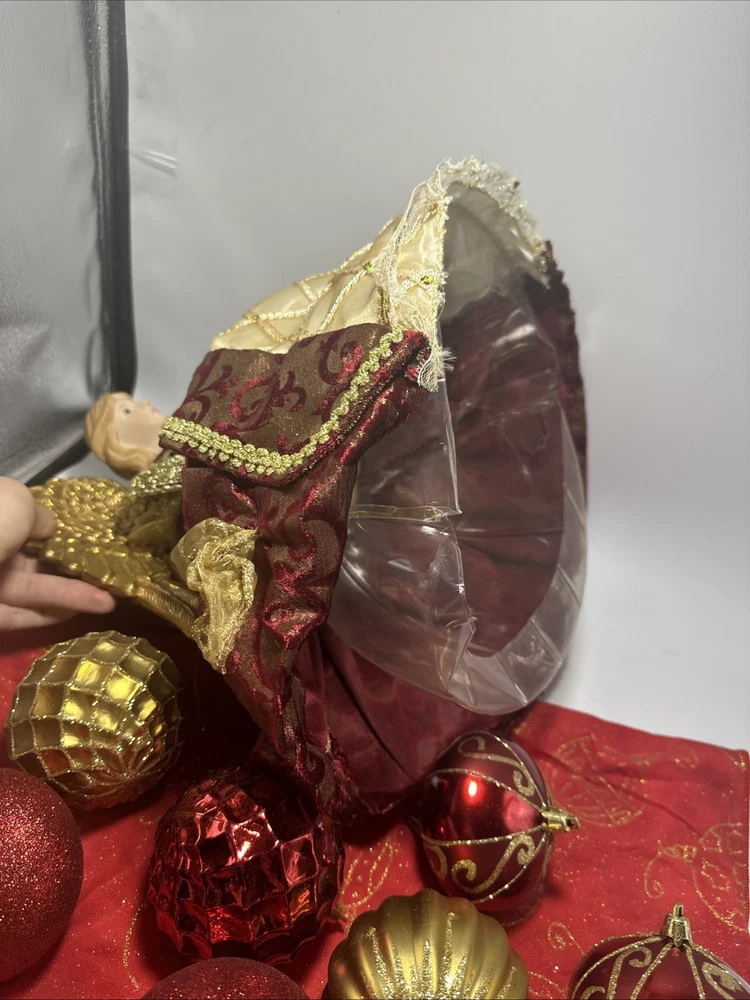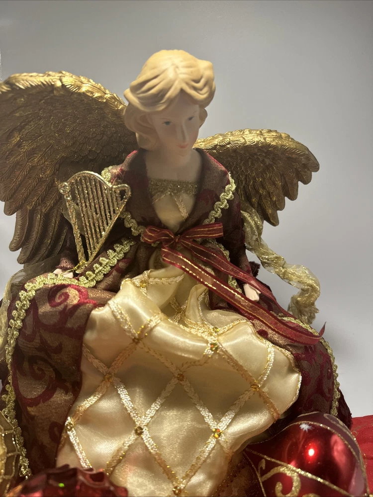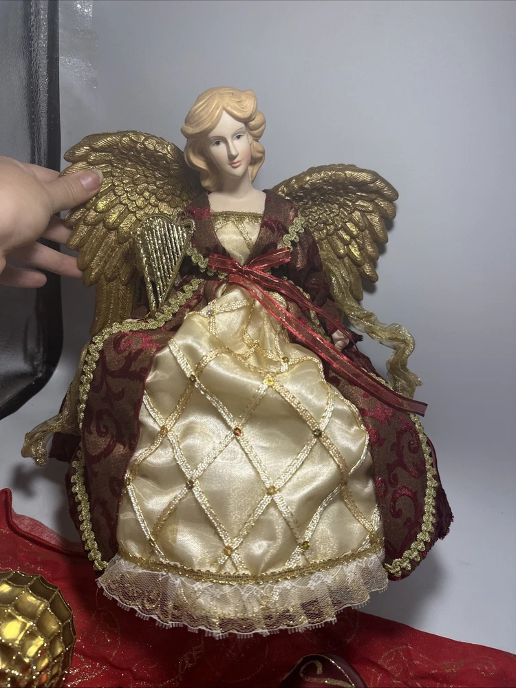 Character Family:AngelType:Tree topperColor:RedTheme:Christmas AngelSigned:NoPackaging:UnboxedSubject:AngelsMaterial:Ceramic & VelveteenFinish:GoldBrand:UnbrandedRoom:Any RoomOccasion:ChristmasShape:coneCharacter:AngelCountry/Region of Manufacture:ChinaHandmade:NoEngraved:No