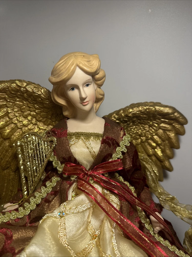 2F-Angel Ceramic Tree Topper with Gold Wings & Christmas Decor