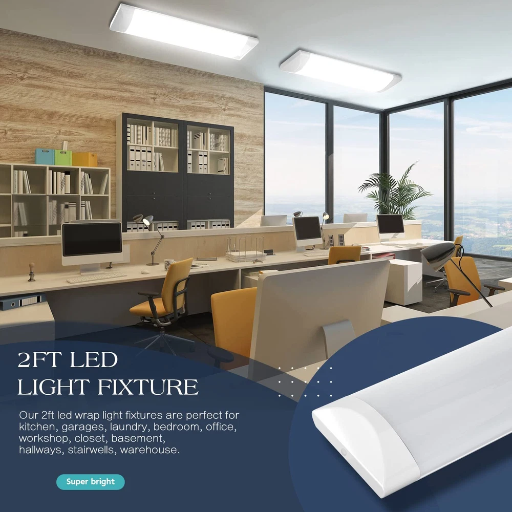 【Elegant & Unique Design】 The unique decorative end caps design of this 2ft led light fixture makes your space more elegant. Featured with the thermal-formed diffuser, the 2ft led kitchen ceiling lights provide soft and comfortable lighting, resulting in a light source without glare, dazzle or spot dot, protecting your eyes. 【Energy Saving】 The 2ft led kitchen light fixture provides an impressive 2400 lumen light output at 20watts, saving you up to 75% energy with the latest LED technology. It is a great replacement for the existing fluorescent or incandescent light fixtures. And this long-lasting 24 inch LED Wraparound Shop Light Provides up to 50,000 hours of maintenance-free operation. 【Widely application】 Our 2 foot flush mount led lights are ideal for your kitchen, laundry, closet, garage, basement, workshop, office, hallway, stairway, utility room, living room and replacing fluorescent versions. 【Quick & Easy Installation】 Follow our installation guide for a quick and easy setup, mounting hardware included. Directly mount this 2ft. led light fixture to the ceiling,connect wire correctly. If you want to link multiple lights together, just knock out the holes on the end, and use connect wires to link up together. 【Benefits】 2 foot led light fixture can last 23 years (6 hrs per day). If you need any support, please feel free to contact us, our professional after-sales team will solve your problem timely and provide you 100% satisfaction solution.