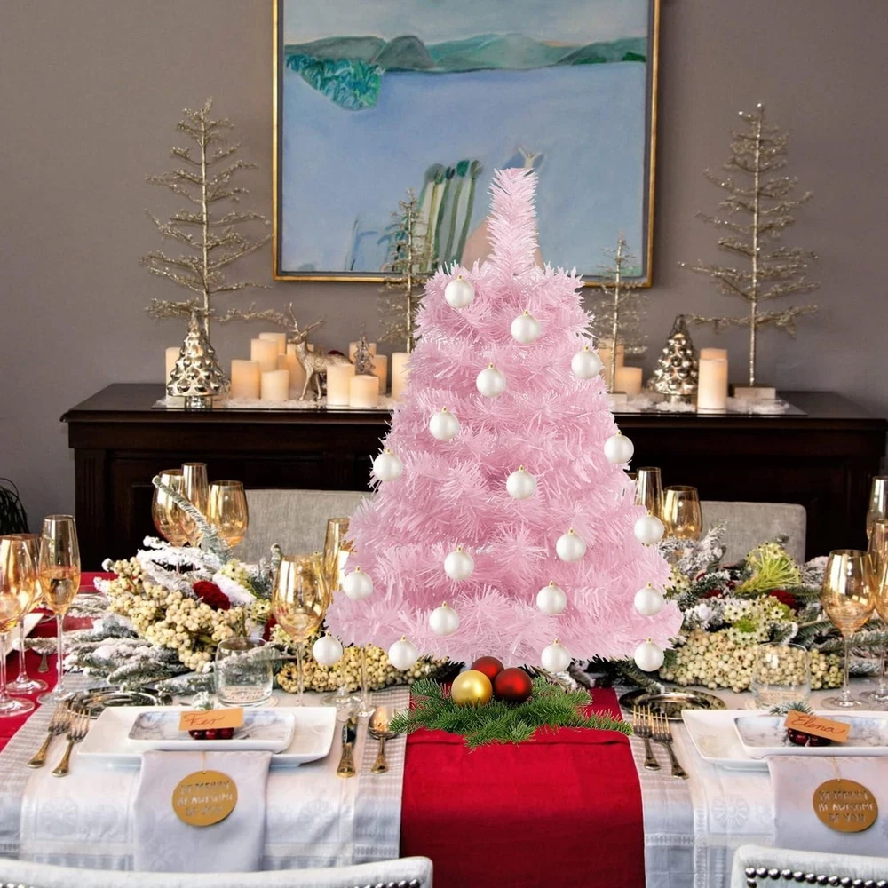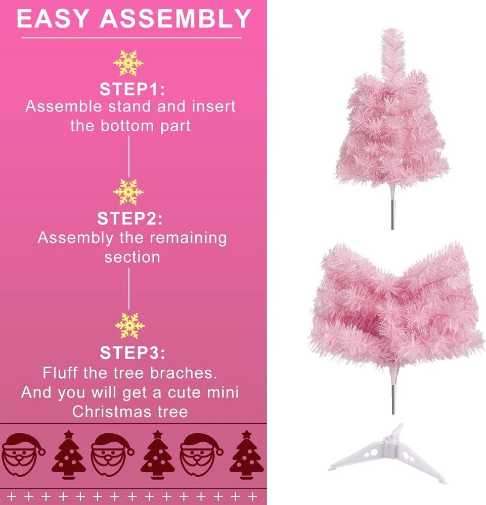 2Ft Artificial Christmas Tree Pink Mini Tabletop Hinged Christmas Tree Package Included: 2Ft Pink Christmas Tree with sturdy plastic stand. The 80 branches tips make this mini Christmas tree look very dense. Premium Quality Material: Our table small Christmas tree adopted high quality PVC material to make it look not only beautiful but also leafy. At the same time, the durable base and backbone also provide good support for the Christmas tree. Perfect for your home holiday decoration centerpiece, Wedding tables, Valentine's Day Decorations, Women's Pride Parties, Springtime Easter decor, and Christmas Holidays. Unique Holiday Decor: This Pink Christmas tree measures 2 feet tall and looks very romantic. Without any decoration, you can DIY your Christmas tree. Add ornaments and other tree décor to create an eye-catching holiday display Simple Setup & Storage: Remove the tedious steps. Convenient wrapped branch design makes setup and take down for storage fast and easy. Wide Application: The mini pink Christmas tree is perfect for Children's room, bedroom, apartment, desktop, tabletop,holiday parties, family party, shopping mall, Christmas decoration and so on. Creating a unique Christmas festival atmosphere for your home.