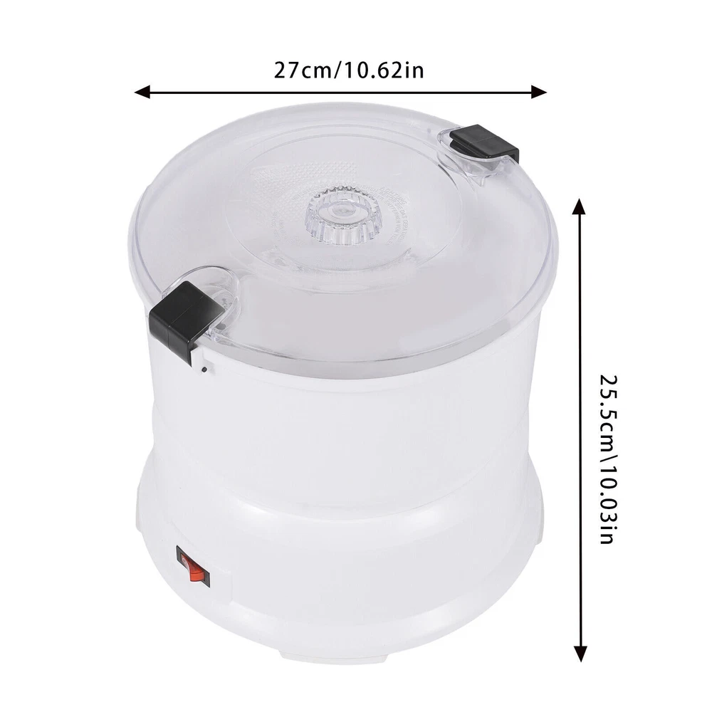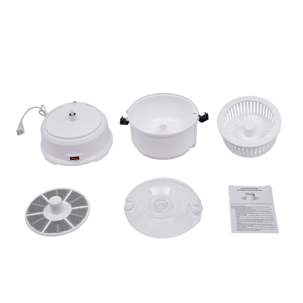2-In-1 Electric Potato Peeler Kitchen Automatic Vegetable Potato Peeling Machine Description Are you still worried about the laborious and time-consuming potato peeling work? Our electric potato peeler machine can help you solve this problem. It can help you peel potatoes quickly and reduce your labor. The fully-automatic design frees up your hands by allowing you to have the machine start working automatically at the touch of a button. Our product will surely be your ideal choice! Key Features Sturdy and Durable: The product is made of high-quality ABS, PP, PS, and stainless steel with an injection molding process, which is hard, wear-resistant, corrosion-resistant, rust-resistant, harmless to health, sturdy, and durable. High Efficiency: With powerful 85W pure copper motor and a maximum capacity of 2.2 lbs, the peeling can be completed in about 1 minute, saving you time and effort. 2 in 1 Use: It can peel about 2.2 lbs of potatoes in addition to holding vegetables for drying, making it a great value for money with two machines in one! Simple Operation: This product adopts an automatic design, which can start peeling potatoes or dewatering vegetables with one button, so that you can free your hands and cook more conveniently! Effortless Cleaning: Thanks to the smooth surface, simple structure, and removable design, you can easily remove the dirt on it with a soft cloth and water. Easy Installation: The simple structure, complete accessories, and detailed instruction manual can help you complete the installation quickly and accurately. Ideal Gift: This practical and high-quality product is ideal for giving to your friends and family who love to cook and enjoy a more convenient way of cooking. Protective Packaging: The foam can better protect your product during transportation and make it delivered to you completely to the greatest extent. Good Customer Service: We stand behind all our guests and look forward to assisting you with your purchase. It is our pleasure to answer your confusion and questions. The end of the story between us is not "we sell and you buy". Details Safe Latches: They can securely fasten the components of the product to ensure the safety of your use. Clear Lid: It allows you to easily observe the status of the potatoes or vegetables in the machine. Anti-slip Pad: It can keep the product stable and less likely to slip off while you use it. Smooth Edge: The rounded and smooth edges not only add to the aesthetics of the product but also improve the safety of use. Application This product is suitable for home use and can be used to peel potatoes and dehydrate vegetables. It is suitable for peeling potatoes less than 2.2 lbs. Specification Model: AOT-P01 Color: White Style: Modern Material: ABS, PP, PS, Stainless Steel Process: Injection Molding Power Source: Corded Electric Plug Type: US Standard Assembly Required: Yes Voltage: 110-127V Power: 85W Peeling Time: About 1 mins Suitable Potato Single Weight: Less Than 100g/ 0.22lbs Maximum Capacity: 1kg/ 2.2 lbs Power Cord Length: 1.15m/ 3.77ft Gross Weight: 2.4kg/ 5.29 lbs Net Weight: 1.8kg/ 3.97 lbs Package Size: 28.3*28.3*27.5 cm/ 11.14*11.14*10.83in Product Size(D*H): 27*25.5 cm/ 10.62*10.03 in Package Included 1* Electric Potato Peeler Machine 1* Stainless Steel Peeler 1* Vegetable Dewatering Basket 1* Lid 1* English Manual Notes Please read the operating manual completely before use. And pay particular attention to the safety instructions included. Please note that continuous work will damage the motor and cause the speed to slow down. To keep this product in the best condition, please work once and standby for 15 minutes. Please note that this product is not for commercial use, only for home use. Please note that you don't need to add water for peeling potatoes. Please note that there is a safety lock between the upper drum and the base and a safety lock between the upper drum and the lid, if one of the two safety locks is not locked the machine will not work. Please allow the slight color difference caused by the shooting light and the 1-3 cm error due to manual measurement, and make sure you do not mind before ordering. Power Source Corded Electric Plug Type US Standard Assembly Required Yes Voltage 110-127V Power 85W Peeling Time About 1 mins Suitable Potato Single Weight Less Than 100g/ 0.22lbs Maximum Capacity 1kg/ 2.2 lbs Power Cord Length 1.15m/ 3.77ft Brand Unbranded Type Peeler Material ABS, PP, PS, Stainless Steel Color White Model AOT-P01