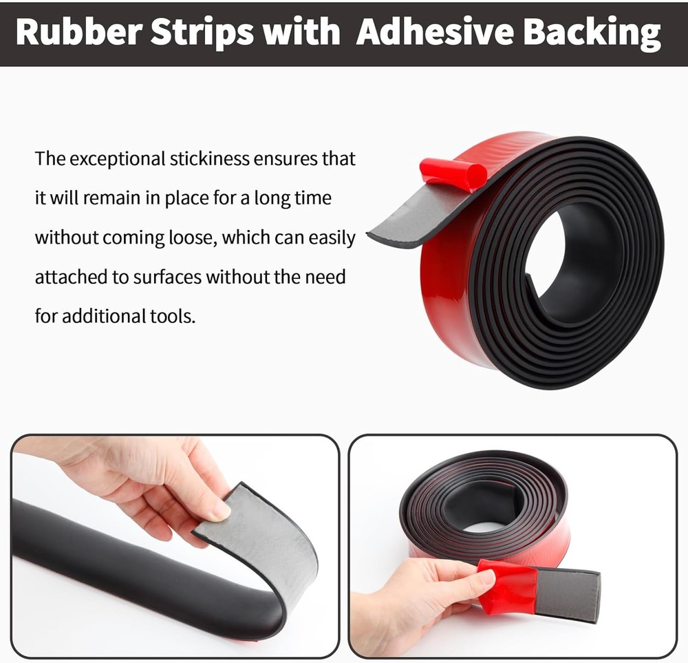 Self Adhesive Rubber Strips, Solid 2" W x 1/16" T x 120" L Product Details Brand: Heonay Material: Rubber Product Dimensions: 120"L x 2"W Item Thickness: 0.06 Inches Number of Items: 1 Manufacturer: Heonay Unit Count: 10.0 Feet Part Number: Heay-rub111 Item Weight: 15.1 ounces Item model number: Heay-rub111 Size: 2" W x 1/16" T x 120" L Style: Self Adhesive Item Package Quantity: 1 Measurement System: English Batteries Included?: No Batteries Required?: No Brand: Heonay Material: Rubber Product Dimensions: 120"L x 2"W Item Thickness: 0.06 Inches Number of Items: 1 【Quality Rubber Material】The rubber strip is made from premium solid rubber material, ensuring it remains tough and durable even under heavy weight. Compared to ordinary sponge or foam strips, our adhesive backed rubber are more tear-resistant and long-lasting. 【With Strong Adhesive Backing】The rubber gasket material with a strong adhesive backing can be easily attached to surfaces without the need for additional tools. 【Enhanced Performance】The rubber strips with adhesive backing is wear-resistant and durable, can effectively reduce unwanted friction between objects. 【Easy to cut】The rubber padding with adhesive can be easily cut to any desired length with scissors. Their exceptional flexibility allows them to seamlessly conform to any surface or shape, making them the perfect solution for tight spaces or irregular surfaces. 【Multifunctional Usage】This rubber adhesive pads are perfect for various purposes such as DIY gaskets, seals, flooring, anti-vibration cushioning and anti-slip applications. It also provides shock absorption, sound insulation and pressure resistance while protecting floors with its cushioning properties. Self Adhesive Rubber Strips Solid Neoprene Rubber Strips with Adhesive Backing Self Stick Rubber Gasket