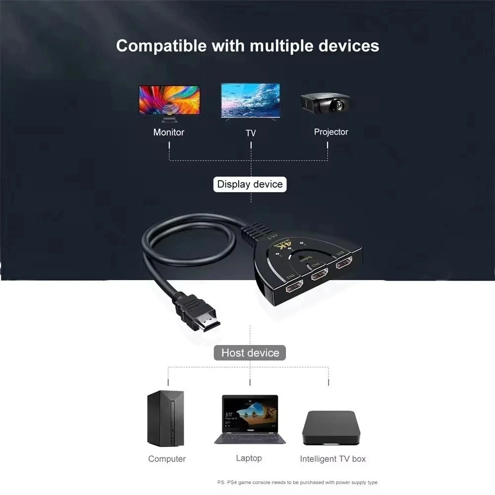 Product Description Product Description This 3-in-1 HDMI switcher is the perfect solution for users who need to connect multiple HDMI devices to a single display and easily switch between them. This HDMI switcher is a high-performance HDMI switcher that connects to 3 HD 4K video sources with multi-channel digital audio and video, and sends HD audio and video signals to 1 HD display device by switching the outputs at will via remote control or manual keys, with a resolution of up to 4K*2K and downward compatible with 1080P. It not only allows cyclic switching with the keys, but also includes remote control switching as well as intelligent recognition Switching. That is to say, as long as you in the signal source equipment for power switching, this switch will automatically respond. Used for connection, signal amplification, multi-screen conversion, multi-screen selection between digital HDTV with HDMI interface, plasma display, LCD monitor, set-top box, DVD player, Blu-ray player, digital camcorder, audio/video receiving device, home video recording, satellite system, Xbox360, PS/3 player, projector system. Features ✔ Easily switch between any 3-way 4K HD HDMI signals; ✔ Supports 480p, 720p, 1080i, 1080p, 1920x1200, 3840*2160 resolutions; ✔ Supports extension of all HDMI devices through HDMI signals; ✔ Supports high definition video,, clear, and up to 4K*2K resolutions; ✔ Fully supports HDMI1.4, compatible with HDMI version 1.3, compatible with HDCP; ✔ Good compatibility for DVD,STB,PS3,PC,DV,DLP Video Projector with HDMI interface and other HDMI devices; ✔Status indicator, real-time understanding of each port movement. ✔ Quick installation, easy operation, plug and play, fashionable and trendy design, exquisite and compact, easy to carry. Intelligent function 🔹 After the switcher is powered on, it will automatically select the source device that is powered on, the priority of selection is: Input1>Input2>Input3 🔹 When powering on a source device or plugging that source device into the switcher, it automatically selects that source device. 🔹When turning off the power of a source device or unplugging it from the switcher, it will automatically select the next source device whose power is turned on, and the priority of selection is: Input 1>Input 2>Input 3. Specifications Product Name: HD HDMI Switcher 3 into 1 Color: Black Video Amplifier Bandwidth: 2.5 Gbps; Input Video Signal Level: 1.2 volts p-p; Input DDC Signal Level: 5 volts p-p (TTL); Single Connection Signal Range: 2160p; HDMI Input/Output Connector: HDMI Class A 19-pin Female Power Consumption: 5W Packing List HDMI Switcher 3 into 1 * 1 Payment Returns Contact Us Shipping Feedback 1. We only accept eBay payments. 2. All payments must be made within 3 days after auction won. Item may be returned for refund or replacement within 30 days of the purchase date. Returned merchandise must be unused, in original packaging and include all accessories. Shipping costs are non-refundable. Please do not hesitate to leave us your 5 Star ★★★★★ of DSR positive feedback if you are satisfied with our products, delivery or services. If you have any question or unsatisfied with your purchase, please email us first to get a better solution before you leave a neutral or negative feedback. We work hard to make sure every customer 100% satisfied and resolve any problem for you. Please email us first in the following situations: 1. The item can't work properly. 2. The item broken on the post. 3. You bought or received the wrong items. 4. You have not received your shipment within the period. 5. Before you give us neutral or negative feedback. 6. Before you open a case/return on eBay. All questions will be replied within 24 hours (Except Saturday and Sunday or holidays). Thank you for your kindness! 1. eBay Payments Confirmed Addresses Only. 2. No Delivery to Alaska and Hawaii or PR. 3. No P.O. Box and APO/FPO Delivery. 4. Tracking Number will be provided. 5. Domestic shipping is within the 48 Contiguous States of United States, the delivery time is between 2 and 8 days. Items will be shipped by UPS, USPS or Fedex within 3 business day after receiving full payment. 6. International shipping is from China, the delivery time is between 10 and 30 working days. As a seller, Positive Feedback is very important to us. We try our best to let our customers to be happy. If you have any question about your order, please contact us by email and let us know. We are willing to do our best to make up for it. Thank you very much for supporting our store! Payment 1. We only accept eBay payments. 2. All payments must be made within 3 days after auction won. Returns Item may be returned for refund or replacement within 30 days of the purchase date. Returned merchandise must be unused, in original packaging and include all accessories. Shipping costs are non-refundable. Please do not hesitate to leave us your 5 Star ★★★★★ of DSR positive feedback if you are satisfied with our products, delivery or services. Contact Us If you have any question or unsatisfied with your purchase, please email us first to get a better solution before you leave a neutral or negative feedback. We work hard to make sure every customer 100% satisfied and resolve any problem for you. Please email us first in the following situations: 1. The item can't work properly. 2. The item broken on the post. 3. You bought or received the wrong items. 4. You have not received your shipment within the period. 5. Before you give us neutral or negative feedback. 6. Before you open a case/return on eBay. All questions will be replied within 24 hours (Except Saturday and Sunday or holidays). Thank you for your kindness! Shipping 1. eBay Payments Confirmed Addresses Only. 2. No Delivery to Alaska and Hawaii or PR. 3. No P.O. Box and APO/FPO Delivery. 4. Tracking Number will be provided. 5. Domestic shipping is within the 48 Contiguous States of United States, the delivery ti