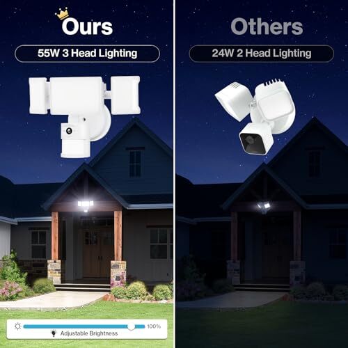 2K QHD Wired Floodlight Security Camera Outdoor 55W Hardwired White