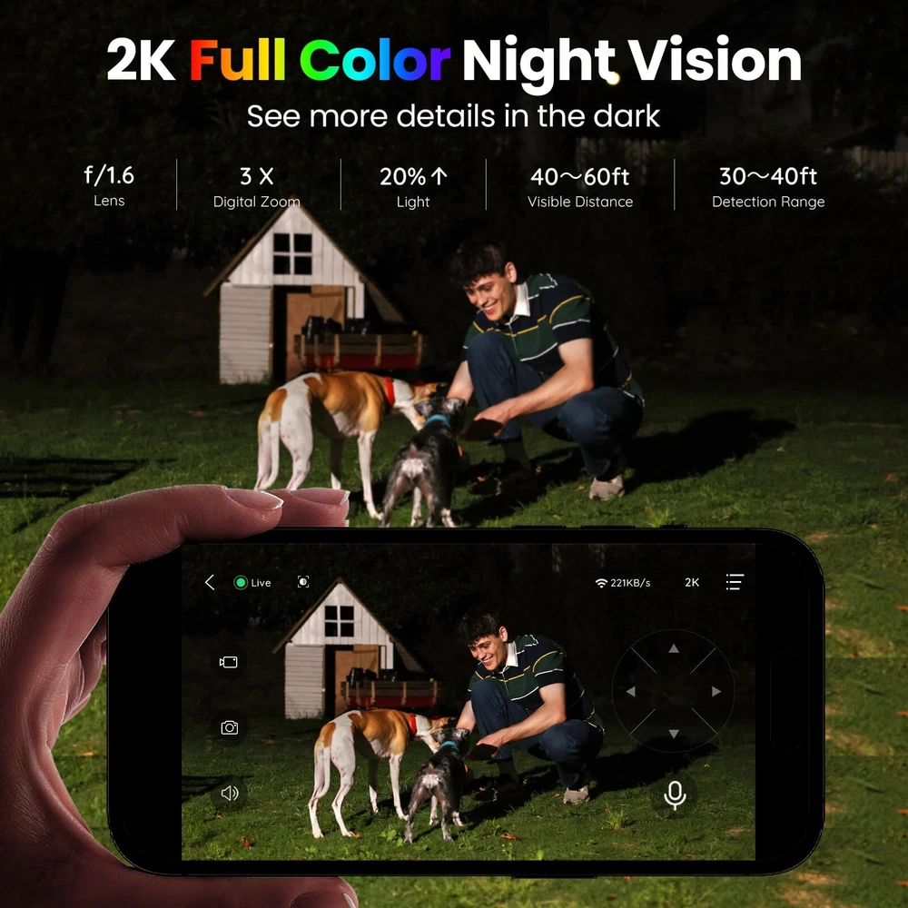 【Solar/Battery Powered & 2.4Ghz WiFi connection】 solar outdoor camera supports 2.4Ghz WiFi connection (5GHz WiFi is not supported). With a built-in 4400mAh rechargeable battery, as long as there is sunlight to provide the necessary power, this wireless rechargeable battery camera can operate continuously and enjoy uninterrupted security monitoring without any hassle. No wires and cables are required, making it easy to install and use 【3MP 2K HD Image & Color Night Vision】 3MP solar security camera wireless outdoor allows you to see delicate images with its 2K HD resolution(2304 × 1296). Equipped with infrared light and spotlight, WiFi camera outdoor supports black and white IR night vision view and full color night vision view, providing you with HD color images no matter day or night 【AI Motion Detection & Two-Way Audio】 Advanced AI recognition technology support customize the monitoring area and target in the "VicoHome" APP to distinguish between people, pets, vehicles, or receiving packages(subscription required), providing higher accuracy. Also, the wireless camera outdoor supports two-way voice intercom function and remote access, allowing you to have a conversation between you and your visitor and remotely access your camera wherever you want 【360° Full View & IP65 Waterproof 】 This PTZ outdoor security camera has a 355° horizontal and 90° vertical rotation range, allowing it to capture wider areas and record crystal-clear videos. IP65 weatherproof solar outdoor security wireless camera is available for multiple places, which can be used safely in regardless of rain, sunlight, or other adverse weather conditions and is able to work in -4℉~113℉(-10℃~45℃) 【Multi-user Connectivity & Intelligent Storage】- solar home security cameras wireless outdoor support multi-user connectivity and device sharing with cloud storage (7-day free trial) and max 128GB Micro SD card (not included). Video files in SD card can only be accessed in your own account, keeping your data safe. Also, if you have any questions during the use of the solar camera, please feel free to contact our technical support