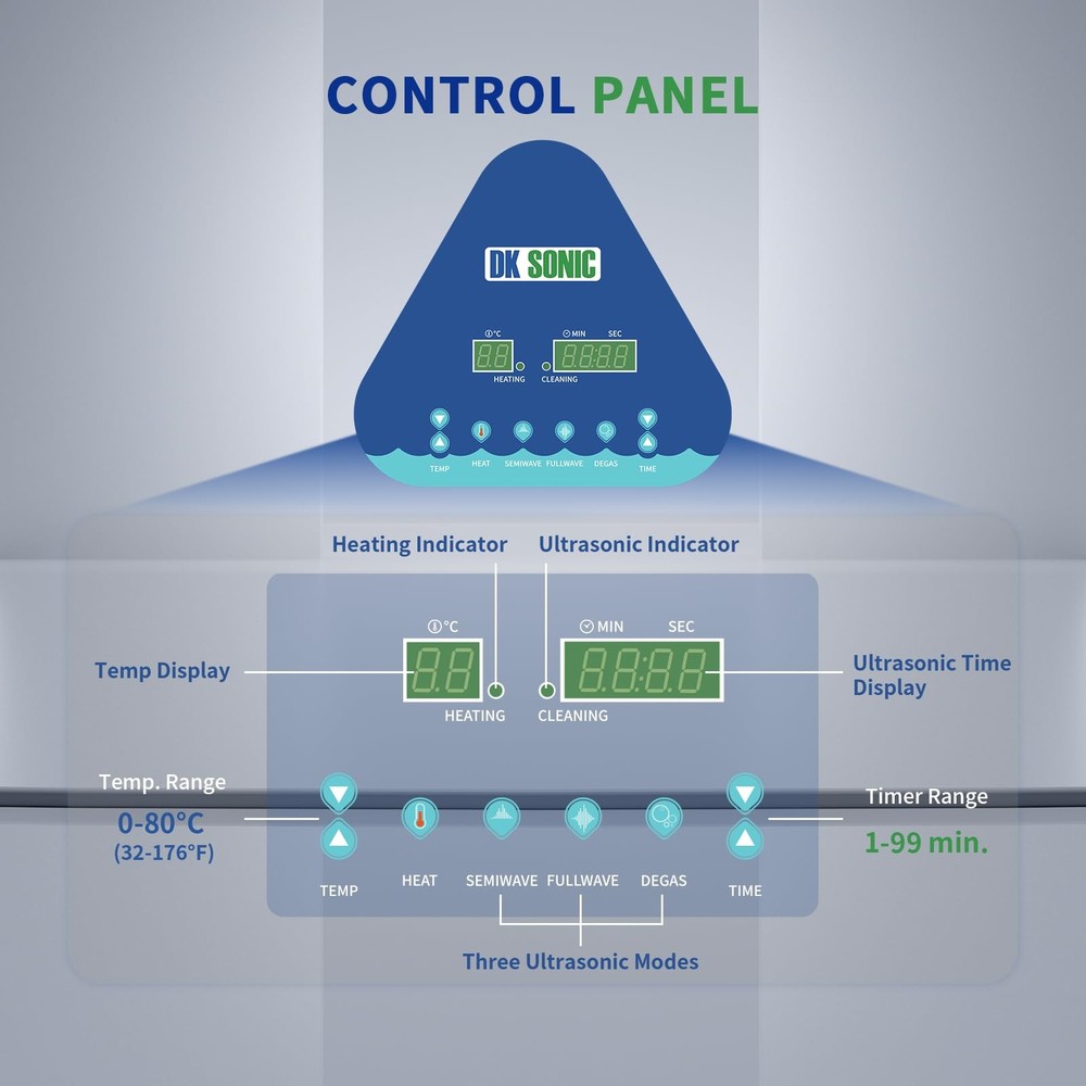 is a professional manufacturer of ultrasonic cleaners and has focused on the R&D of ultrasonic cleaners for more than 10 years. always bears in mind the "quality first, credit first" principle and tries to provide perfect products and great after-sales service. Specifications Tank Material: Stainless Steel SUS304 Heating Power: 100W Ultrasonic Power: 60W Frequency: 40kHz&33kHz Power Supply: AC110V/60Hz Tank Capacity: 2L Time Setting: 1~99 Minutes Temperature Setting: Temp Settings within 0~80℃ Transducer Quantity: 1 sets Tank Size (L x W x H): 175*136*87 mm/6.89*5.35*3.42 in Product Size (L x W x H): 220*170*200 mm/8.7*6.36.69*7.9 in Package Contents 1 x Ultrasonic Cleaner 1 x Cleaning Basket 1 x Stainless Steel Cover 1 x Power Supply 1 x Instruction Manual Multiple Cleaning Modes for an Extensive cleaning Range: Fullwave,Semiwave,Degas Cleaning Modes based on 40KHz ultrasonic frequency make the device applicable for rough surface cleaning and intensive rinse. Generally, fullwave cleaing mode is used for making intensive rinse, while semwave is used for rough surface cleaning Digital Control Panel with LED Display and Memory Function: Digital control panel can make the device be operated more convenient and accurately, and therefore make the device have a long service life; especially the preset cleaning time and heating temperature can be memorized by the device even after power-off unless it is reset manually. SUS304 Stainless Steel Drain Valve and Die-casting Tank: Both the cleaning tank and drain valve of the device are made with SUS304 stainless steel materials, and it makes the device be resistant to weak acid and weak alkali. Free time setting among 1~99 minutes: Extensive time-setting range makes the device be freely set to work for any certain time within 99 minutes based on the characters of the stuffs to be cleaned 0~80°C Heating Range for Degreasing and Dewaxing: Heating function is helpful for reducing the adhesion strength of oil and wax so as to improve the cleaning effect, and generally the best cleaning temperature is among 40~60°C, i.e. 104~140°F
