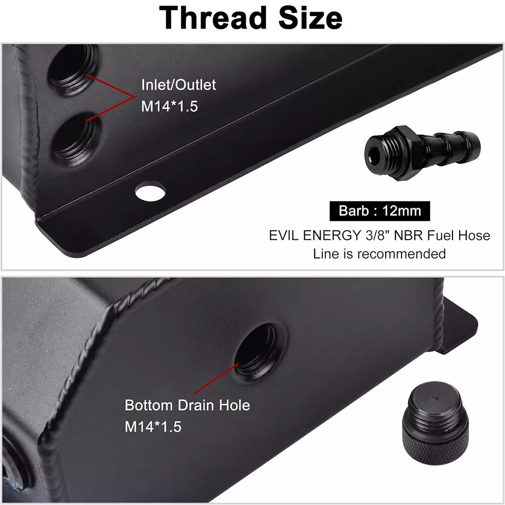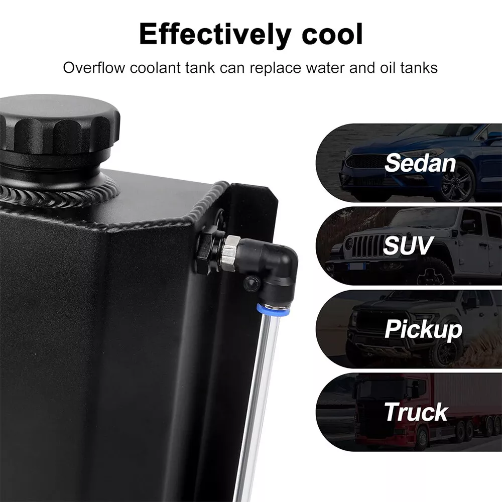 Feature: Capacity:2L Barb inlet and outlet ports:2*12 mm Thread size:M14*1.5 Size:144mm/5.67inchx85mm/3.34inchx260mm/10.24inch Package: Coolant Overflow Tank * 1 Hollow Nut & Pneumatic Connector *2 Hose Connector *2 Aluminium Cap *1 2L Coolant Radiator Overflow Tank +300ml Baffled Oil Catch Can w/Breather Filter 【Coolant Overflow Tank】When the coolant pressure in the radiator exceeds the pressure cap setting, the coolant will flow into the radiator coolant overflow tank. 【Coolant Level Monitoring】With a transparent hose on the side of the coolant resevoir, you can monitor the fluid level in the coolant reservoir tank at all times and know when to empty the coolant overflow reservoir without opening the lid. 【Coolant Reservoir Tank For Car Engine Maintenance】 Coolant expansion tanks can also be used to remove carbon deposits and accumulated sludge in the car's system. So as to achieve the effect of extending the life of the engine and improving the performance of the engine. 【2L Coolant Reservoir Tank】Universal fitment, suitable to most vehicles. Fit For Most Car: Honda Toyota Subaru Mitsubishi Mazda Ford Acura Nissan Infiniti Lexus Scion Jeep Dodge GM etc. 【Good Sealing Performance & Easy to Drain】The sealing lid on the top of the universal coolant overflow tank and the thread of the drain plug are equipped with O-ring gaskets, which have good sealing performance and effectively prevent the system from rusting due to the leakage of coolant. (Waterproof adhesive tape can also be used to enhance air tightness during installation.) There is a drain plug at the bottom of the radiator overflow tank for easy draining and cleaning. Universal coolant expansion tank, fit for mostly of vehicles.Please measure before purchase to make sure there is enough space for installation. Feature: Capacity:2L Barb inlet and outlet ports:2*12 mm Thread size:M14*1.5 Size:144mm/5.67inchx85mm/3.34inchx260mm/10.24inch Package: Coolant Overflow Tank * 1 Hollow Nut & Pneumatic Connector *2 Hose Connector *2 Aluminium Cap *1 Payment Delivery details Terms of sales About us Contact us Payment 1.We only accept PayPal. PayPal is the only online payment method we accept. Please make sure you have a valid/confirmed PayPal account prior bidding. 2.All Paypal Payments must be Confirmed. Payment must be made within 48hrs of the auction end time. Non-Paying bidders will be reported. 3.When you get your package,maybe you will pay some charges, it's taxes for local customs,not pay to us, and the fees are depends on the customs, all buyer are same. Delivery details 1.Items will be shipped within 2 business days after payment is received. 2.We ship to your eBay address. Please make sure your eBay address is correct. Buyer takes responsibility if eBay address is wrong. 3.Import duties, taxes and charges are not included in the item price or shipping charges. Please check with your country customs office for these additional charges. 4.We shipping using UPS or USPS from our nearest warehouse to you. Tracking numbers will be emailed upon shipment. Terms of sales 1.Please feel free to email us if you have any question. 2.We appreciate you contact us via eBay message when you are not satisfied rather than open case or leave negative feedback directly. We'll try our best to solve the issue. 3.Refund will be issued once we receive your returned items. Buyer is responsible for all return shipping charges. 4.Please contact us for return process before you return the item. 5.All items for exchange or refund must be returned in "as new" condition. About us We are the responsible seller ,always provide high-quality products and best service .If you have any questions, please contact us, and will try our best to help you. Please contact us by eBay Message, and we will reply you within 24 hours. Thank you very much! Contact us We are the professional auto parts manufacturer , and provide line lock, AN hose end fittings , fuel line , fuel filter , fuel regulator , exhaust cutout , exhaust tips , exhaust muffler and so on .The quality of the product to be secured. If you have any questions or any needs , please contact us , and will try our best to help you.