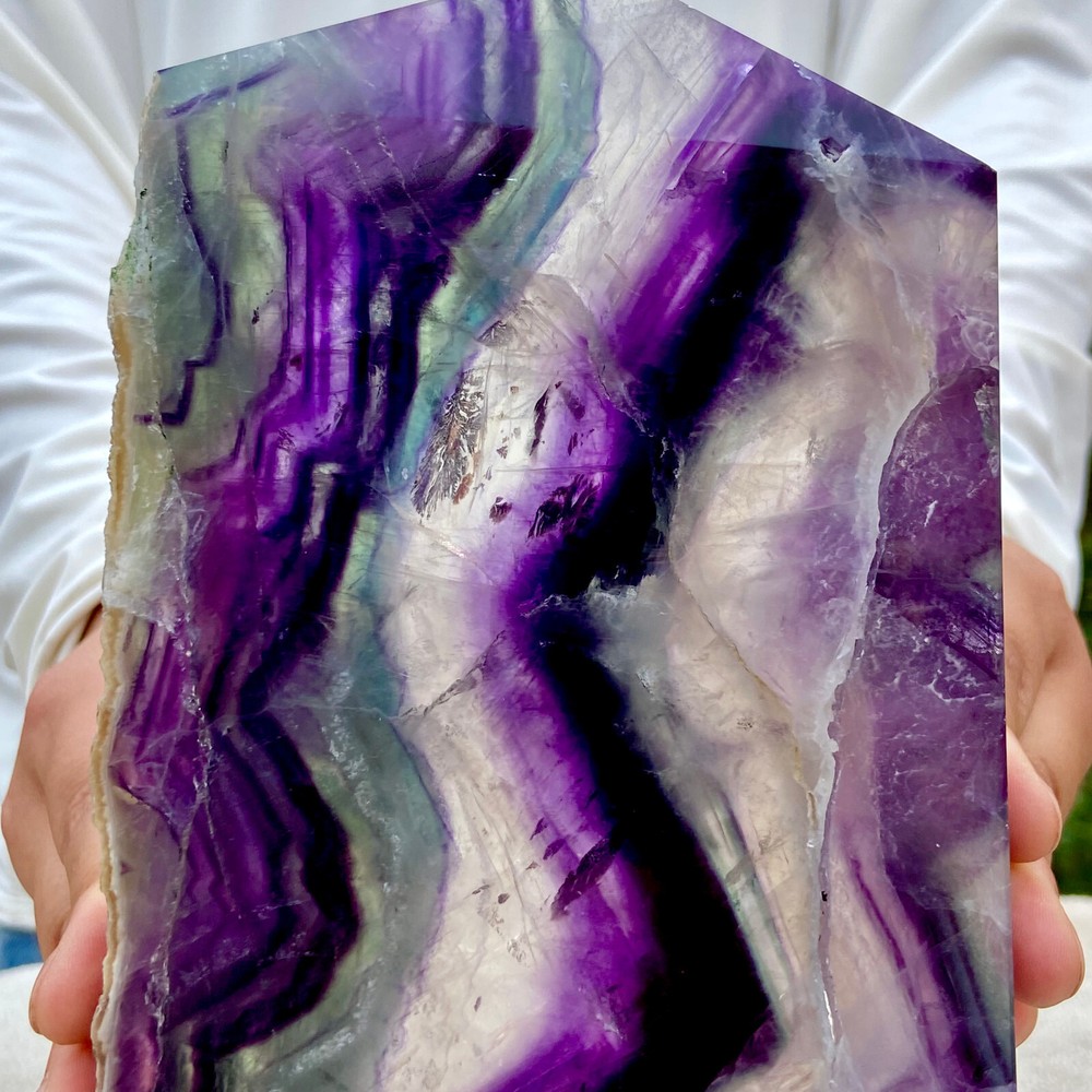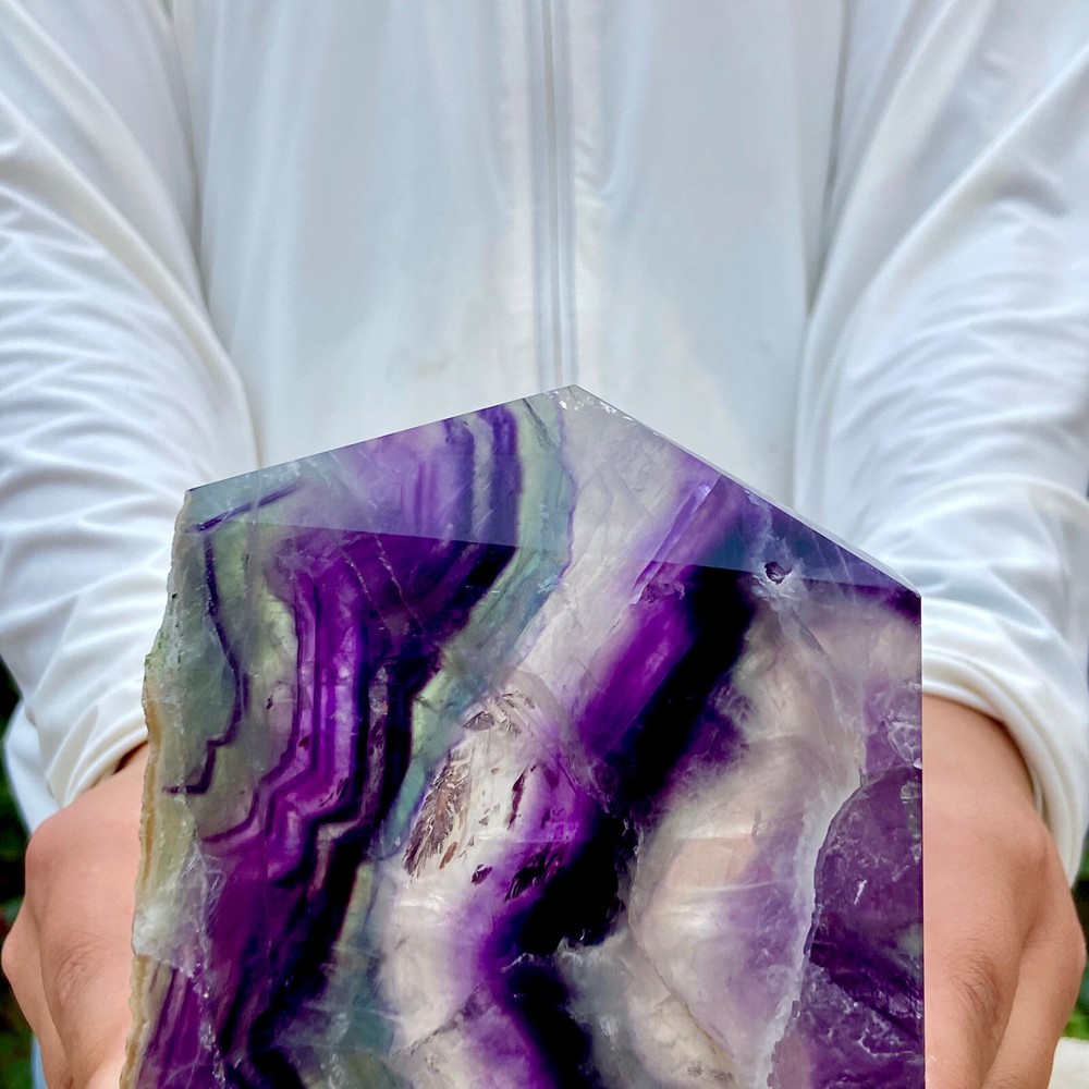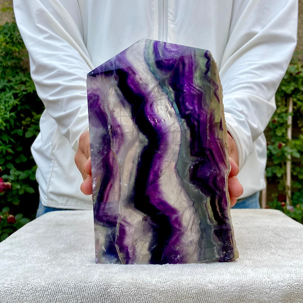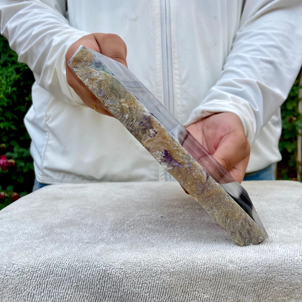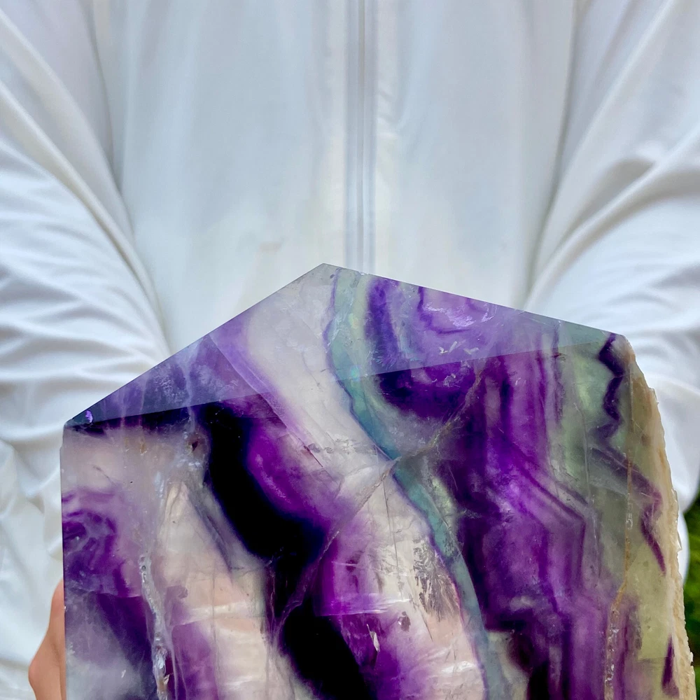 2.5LB Natural Rainbow Fluorite Obelisk Crystal Wand for Healing and Energy