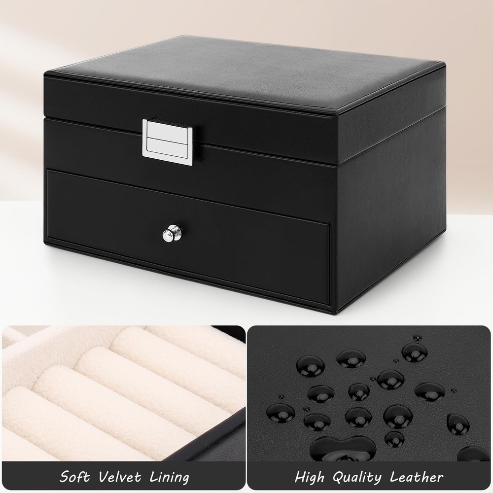 2-Layer Large Jewelry Organizer Box with Travel Case, Luxe Design